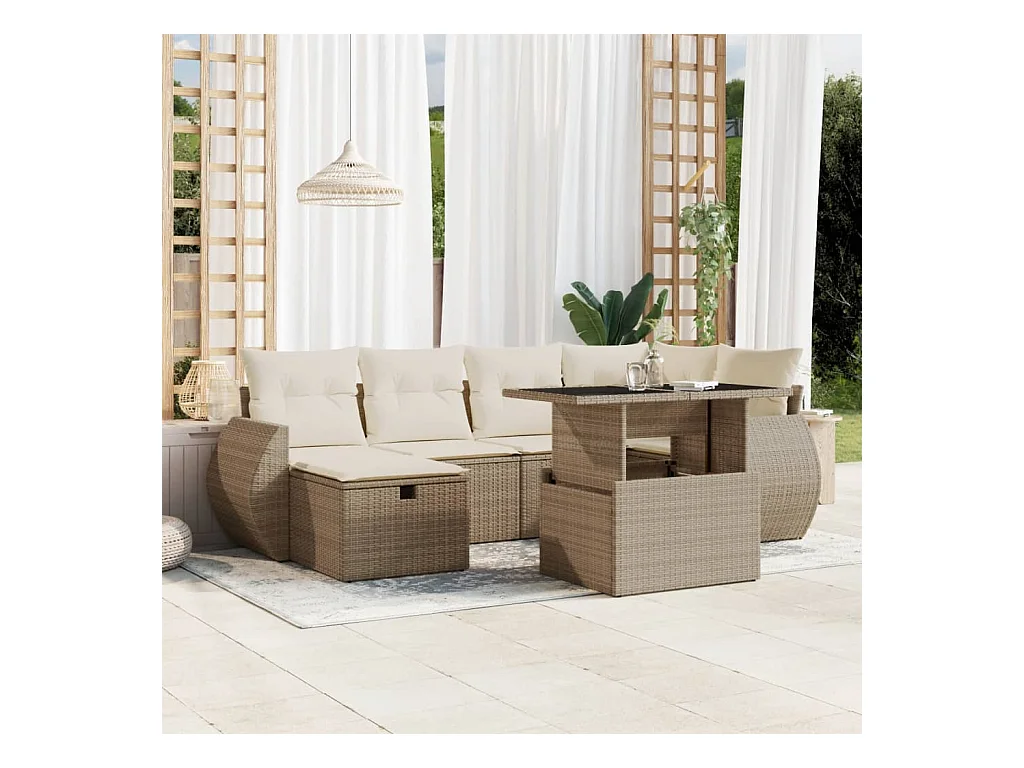 7 peças conjunto de sofás para jardim com almofadões vime PE bege