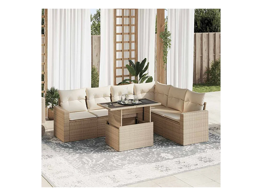 7 peças conjunto de sofás para jardim com almofadões vime PE bege