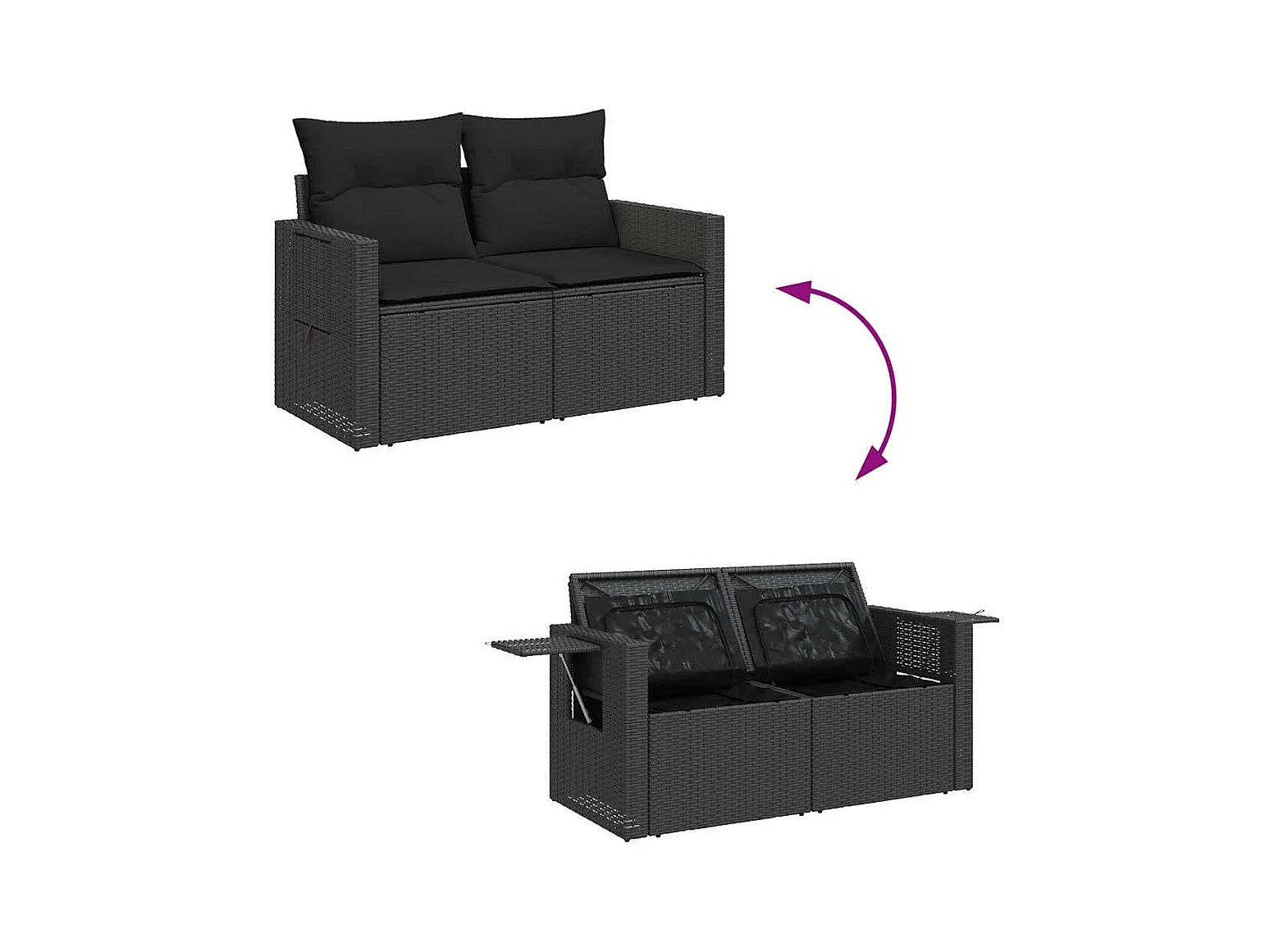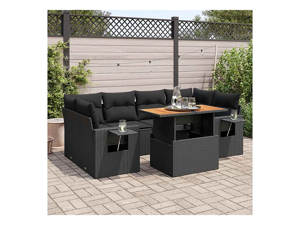7 peças conjunto sofás jardim com almofadões vime PE/acácia preto