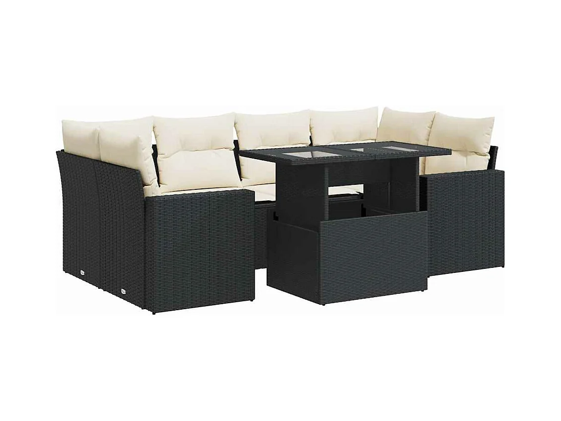 7 peças conjunto de sofás para jardim com almofadões vime PE preto