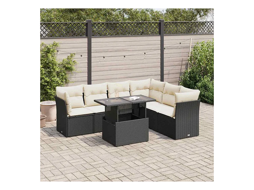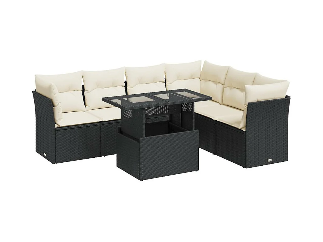7 peças conjunto de sofás para jardim com almofadões vime PE preto