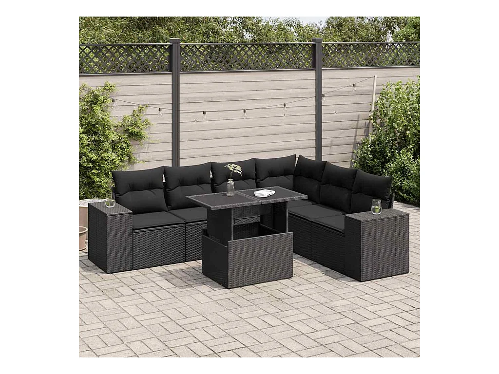 7 peças conjunto sofás jardim com almofadões vime PE/acácia preto