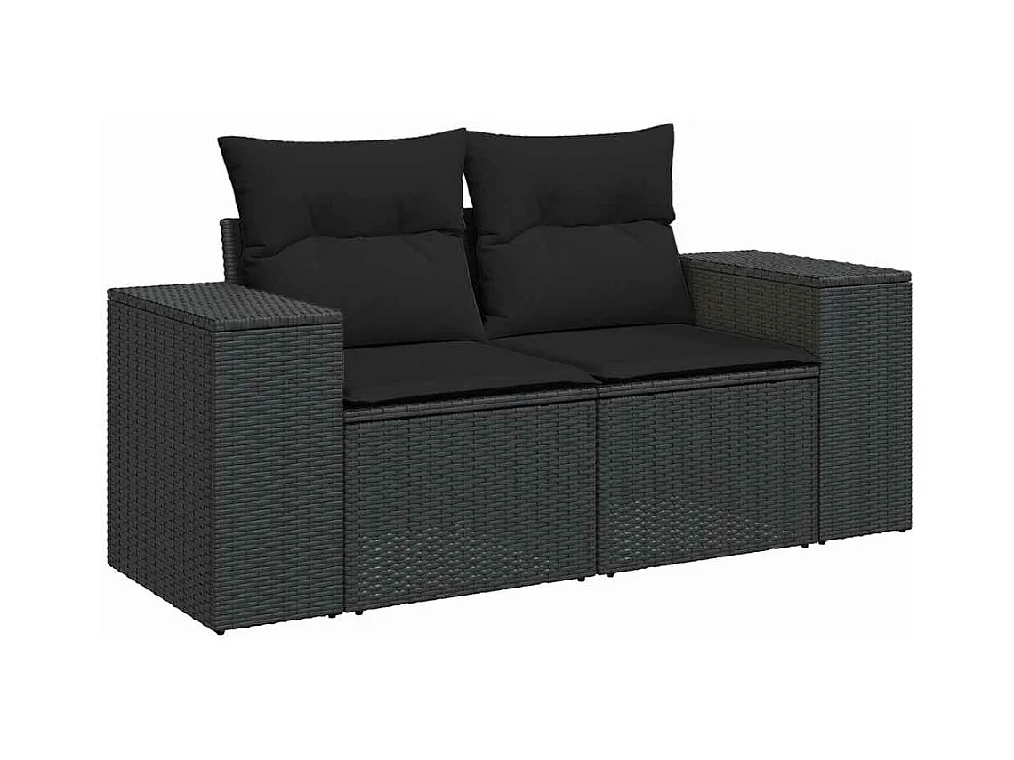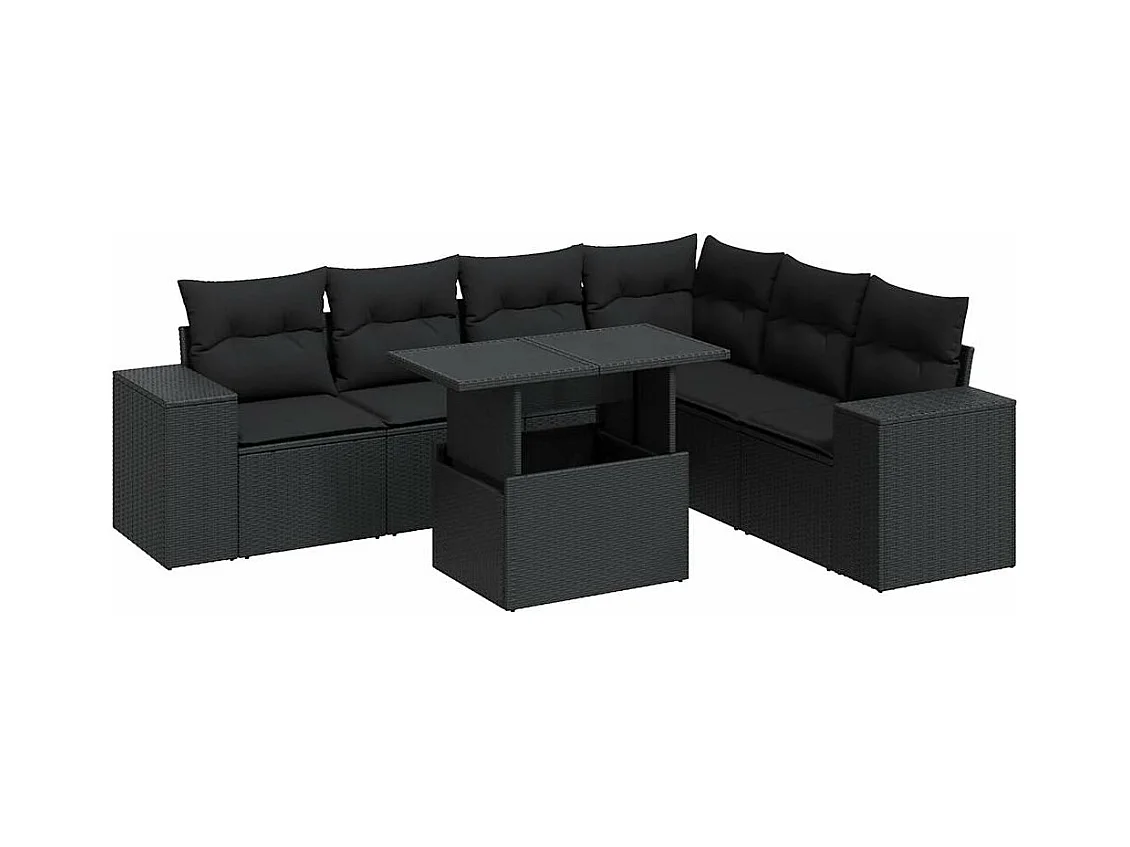 7 peças conjunto de sofás para jardim com almofadões vime PE preto