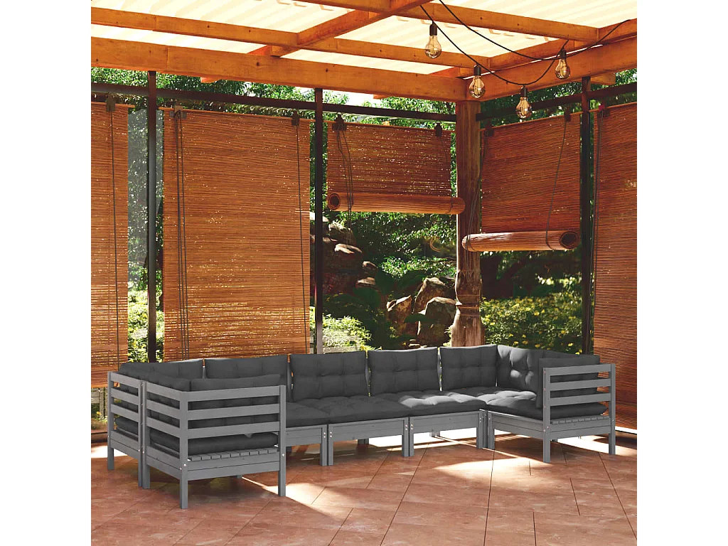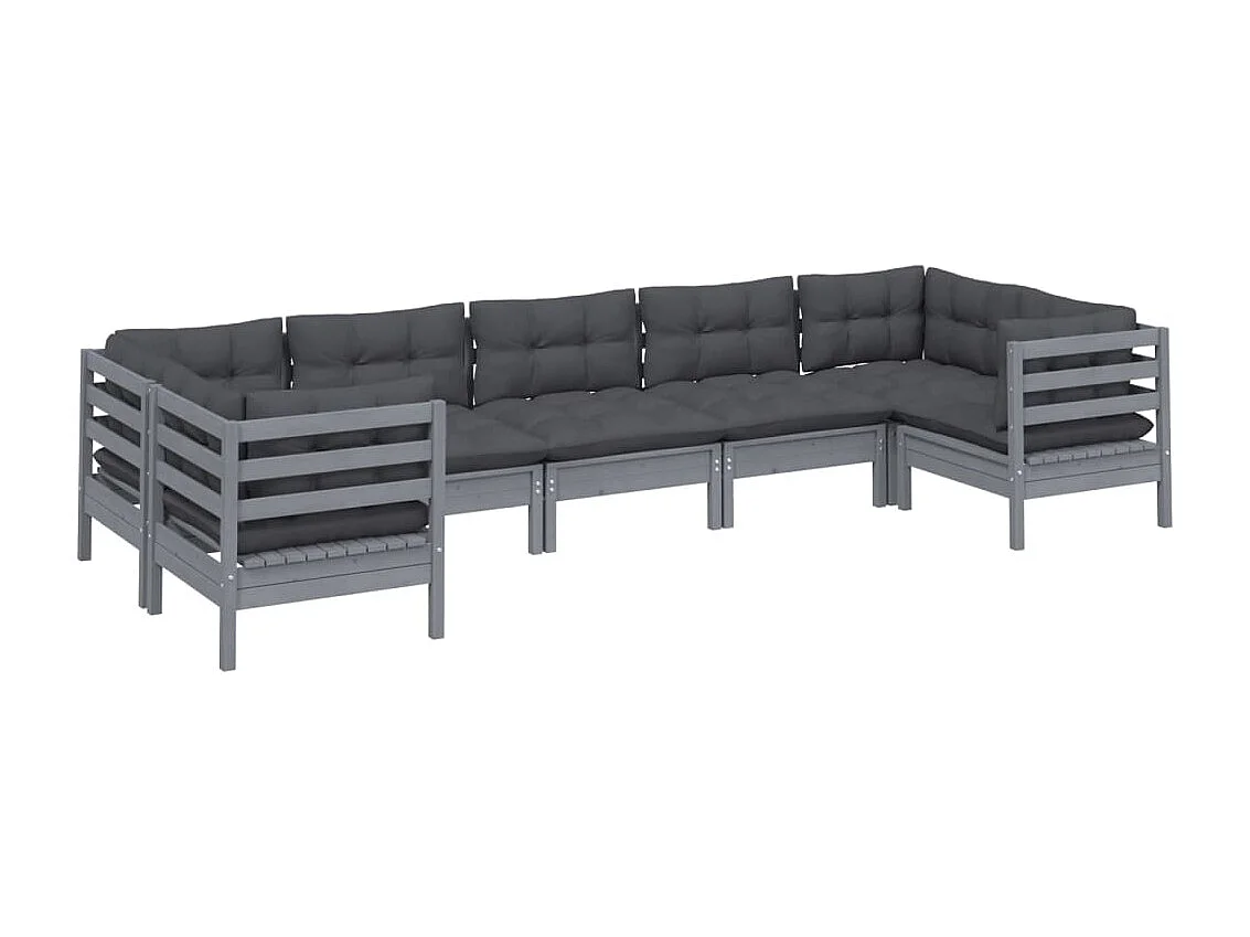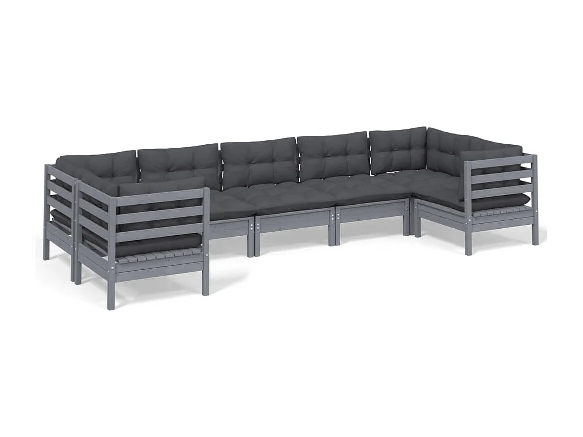 7 peças conjunto lounge de jardim c/ almofadões pinho cinza