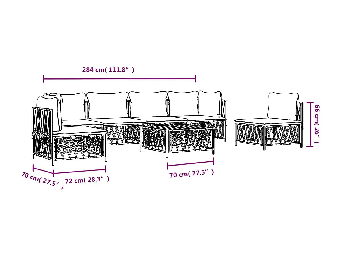 7 peças conjunto lounge de jardim com almofadões aço branco
