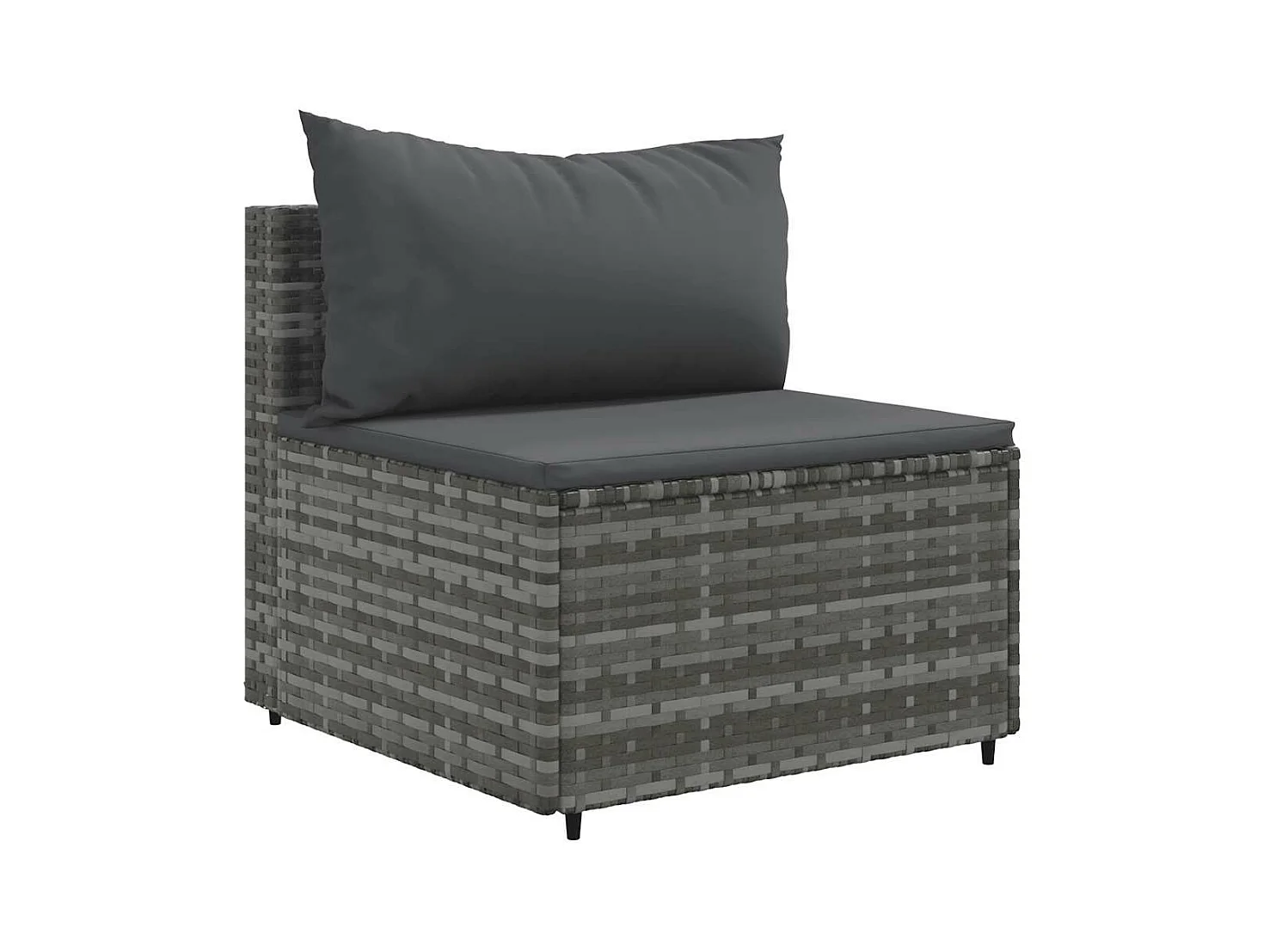7 peças conjunto sofás para jardim com almofadões vime PE cinzento