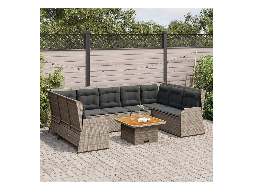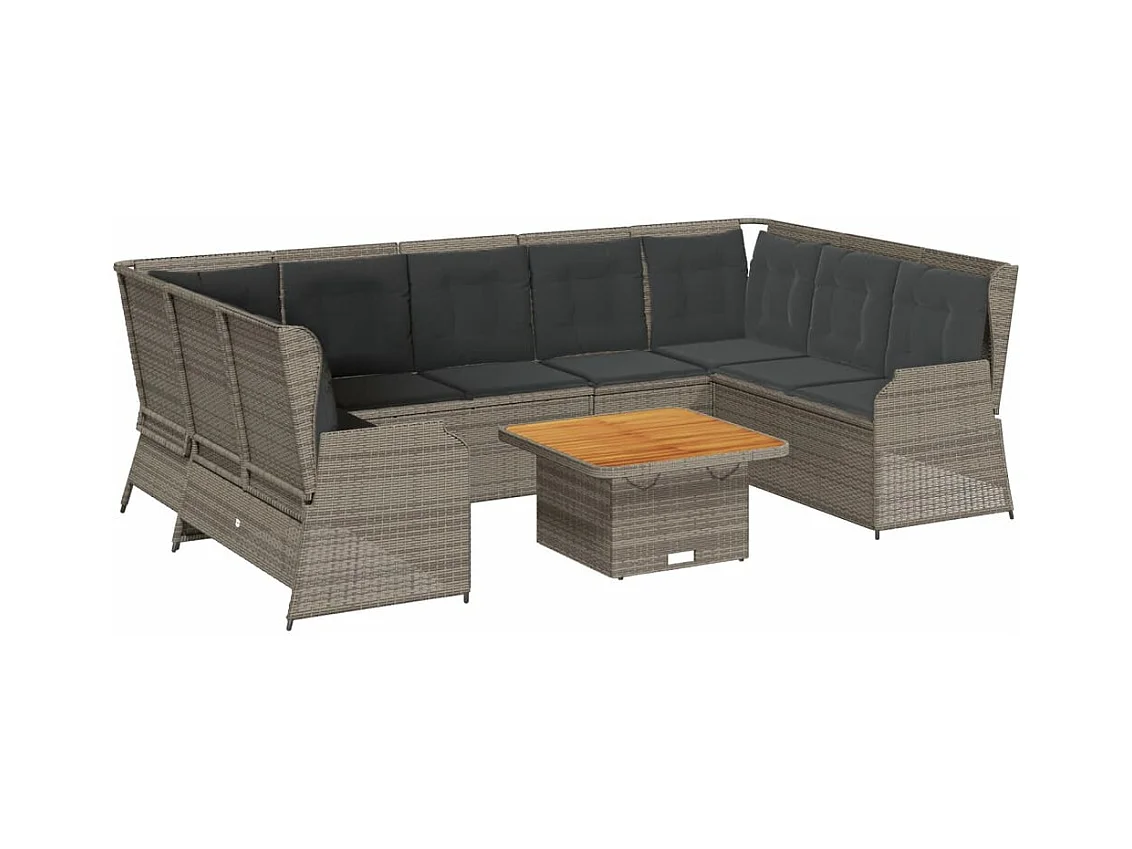 8 peças conjunto lounge de jardim c/ almofadões vime PE cinzento