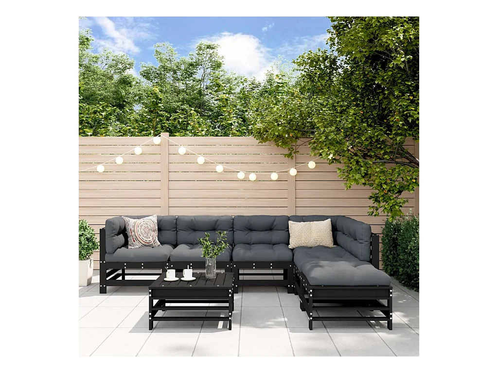 7 peças conjunto lounge jardim c/ almofadões pinho maciço preto