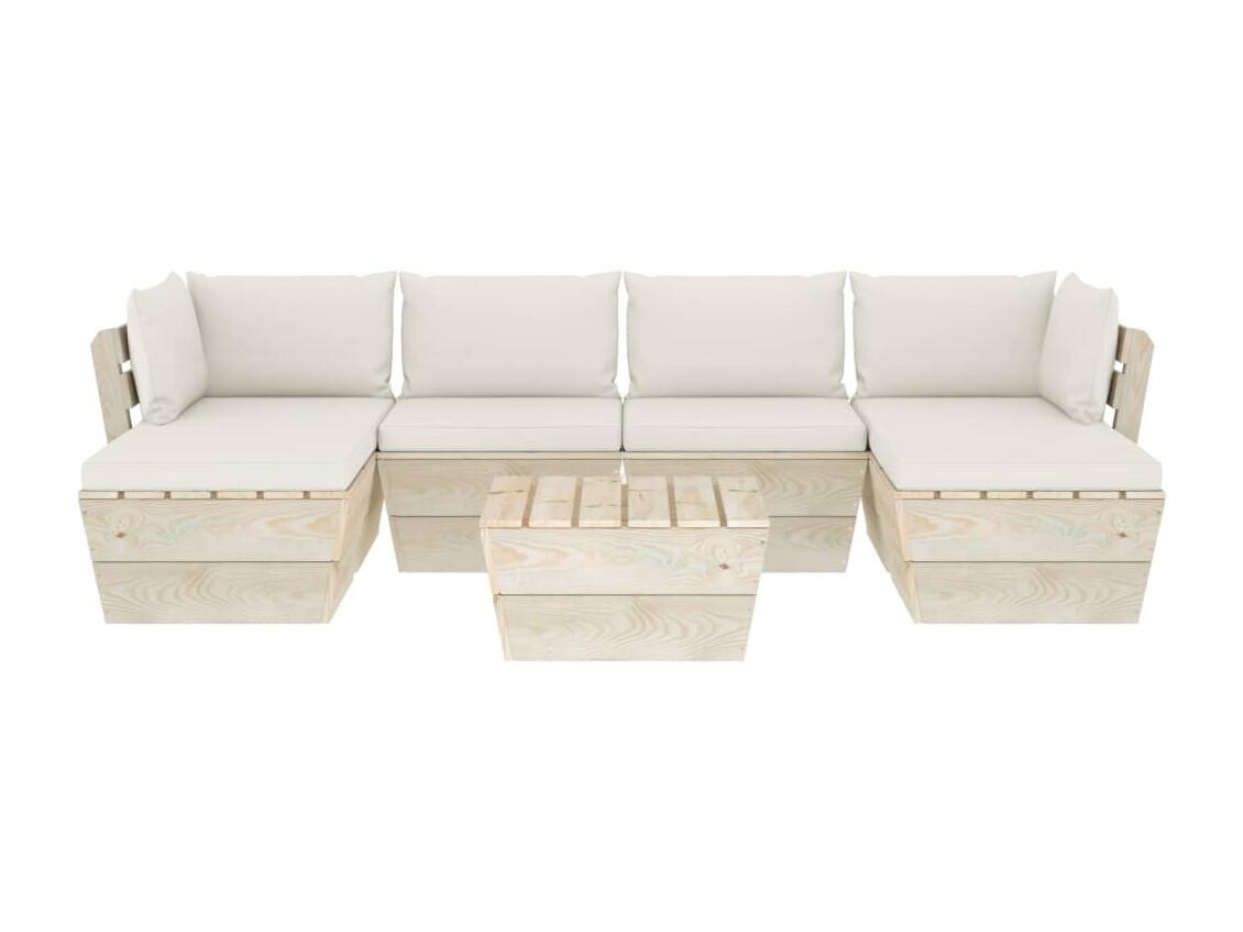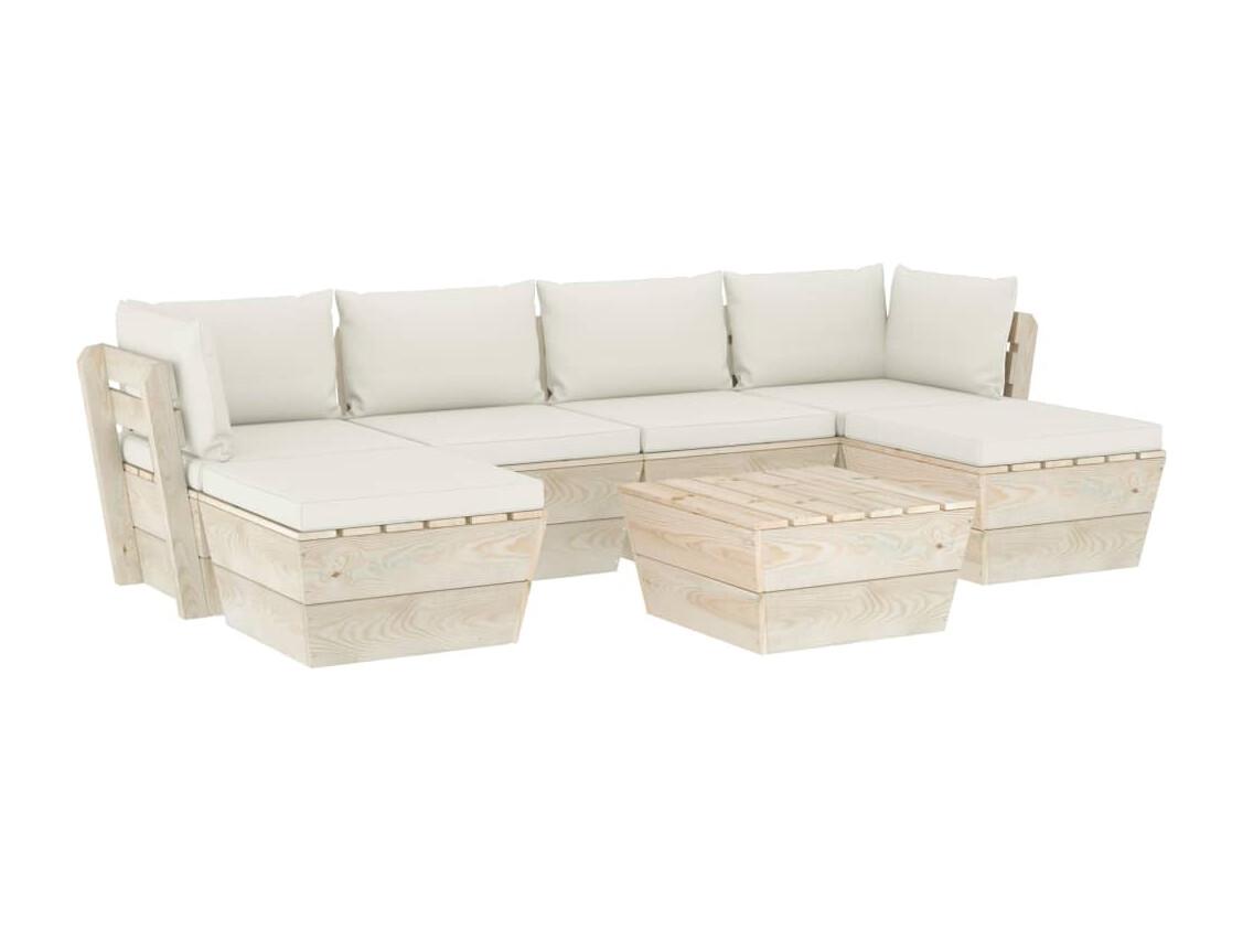 7 peças conjunto lounge de paletes + almofadões madeira de abeto