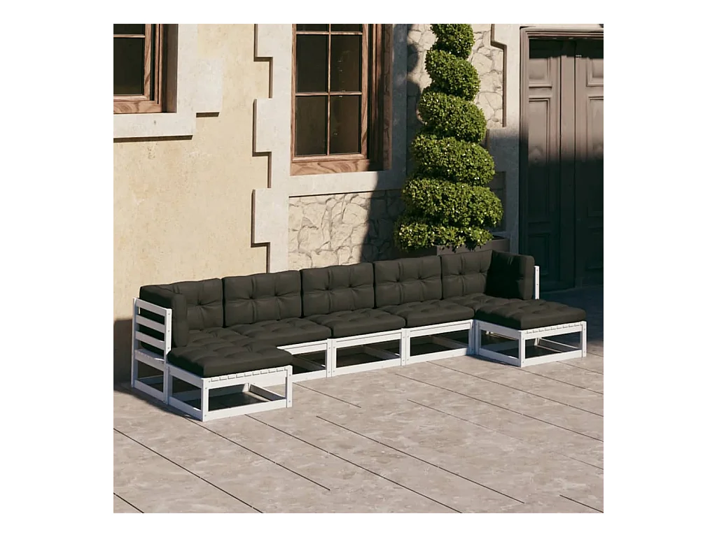 6 pcs conjunto lounge de jardim pinho maciço branco PT30857