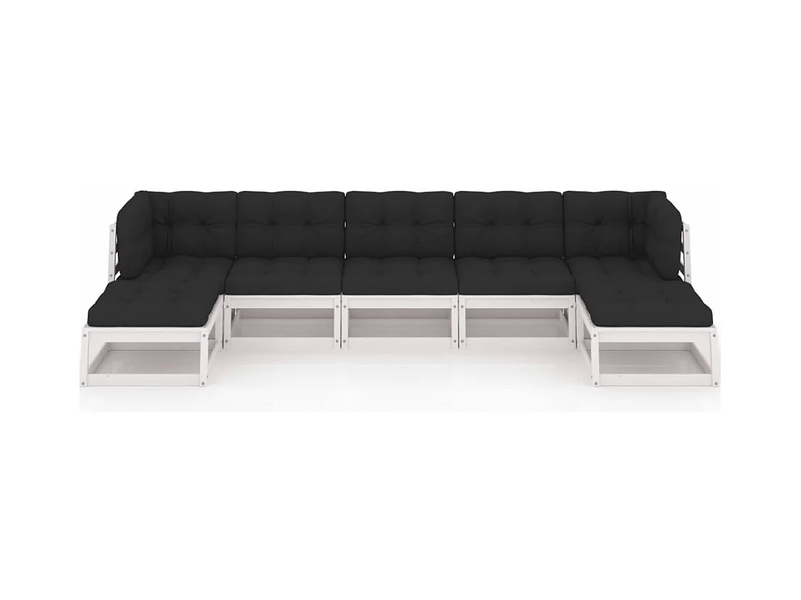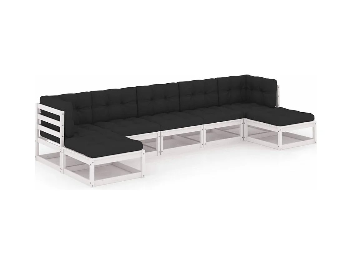 7 pcs conjunto lounge de jardim pinho maciço branco PT444224