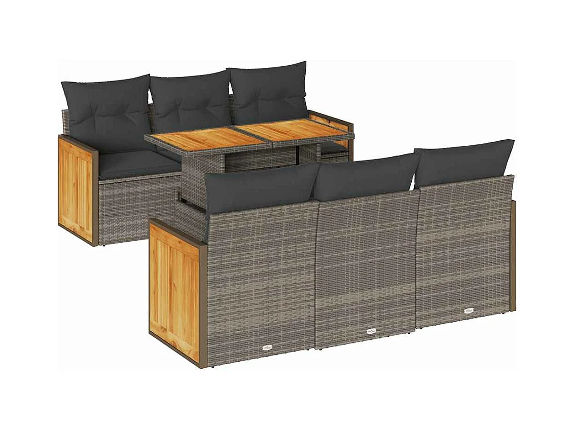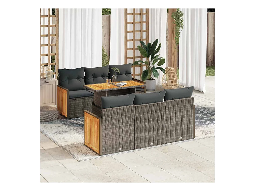 7 peças conjunto sofás jardim almofadões vime PE/acácia cinzento
