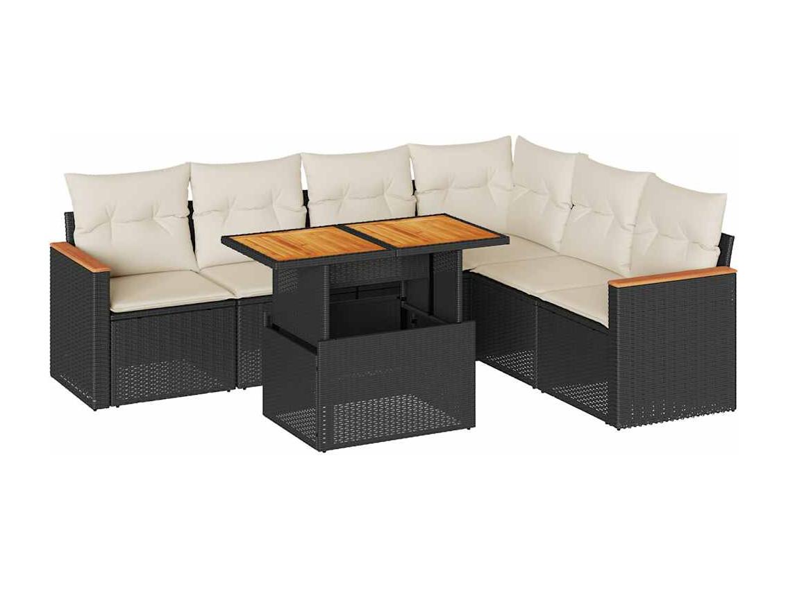 7 peças conjunto sofás jardim com almofadões vime PE/acácia preto
