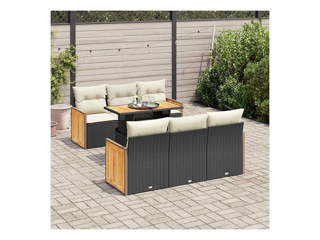 7 peças conjunto sofás jardim com almofadões vime PE/acácia preto