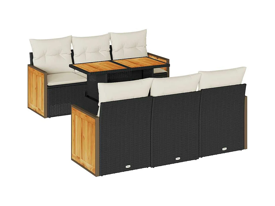 6 peças conjunto sofás jardim com almofadões vime PE/acácia preto