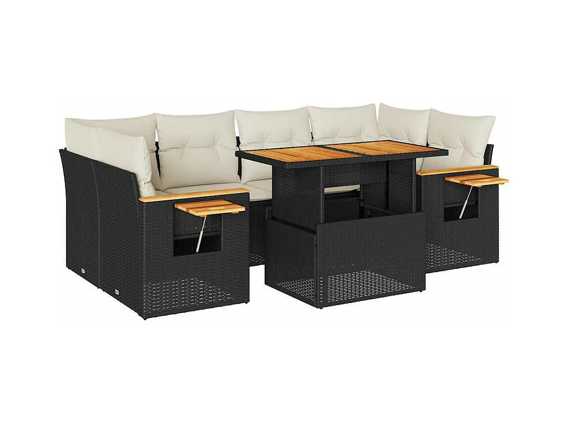 7 peças conjunto sofás jardim com almofadões vime PE/acácia preto