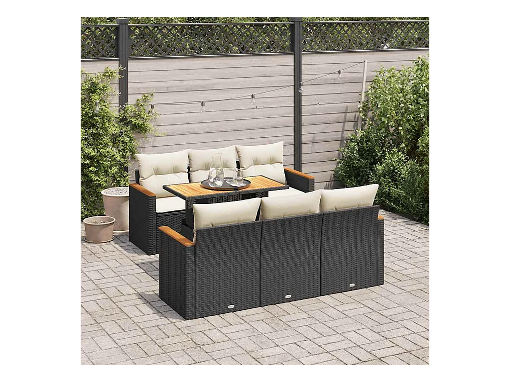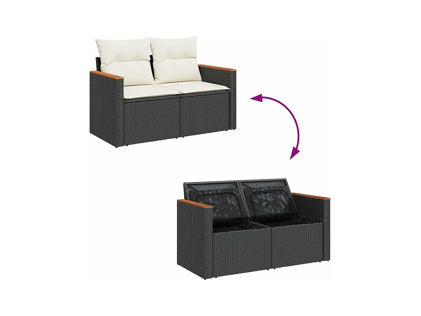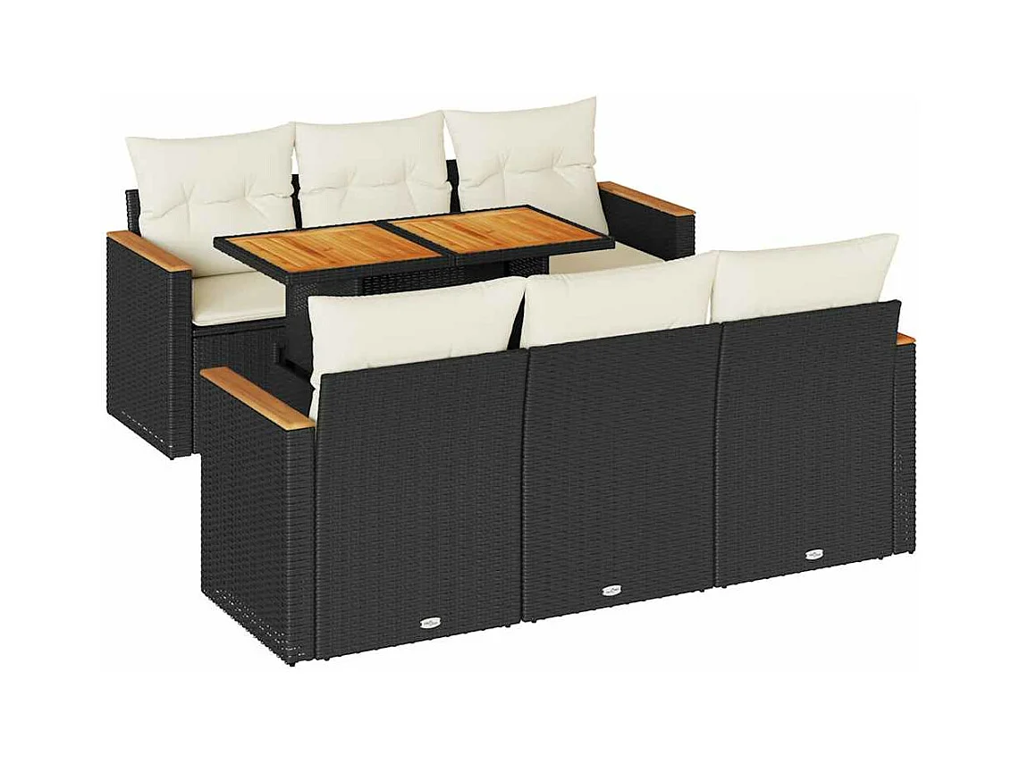 7 peças conjunto sofás jardim com almofadões vime PE/acácia preto