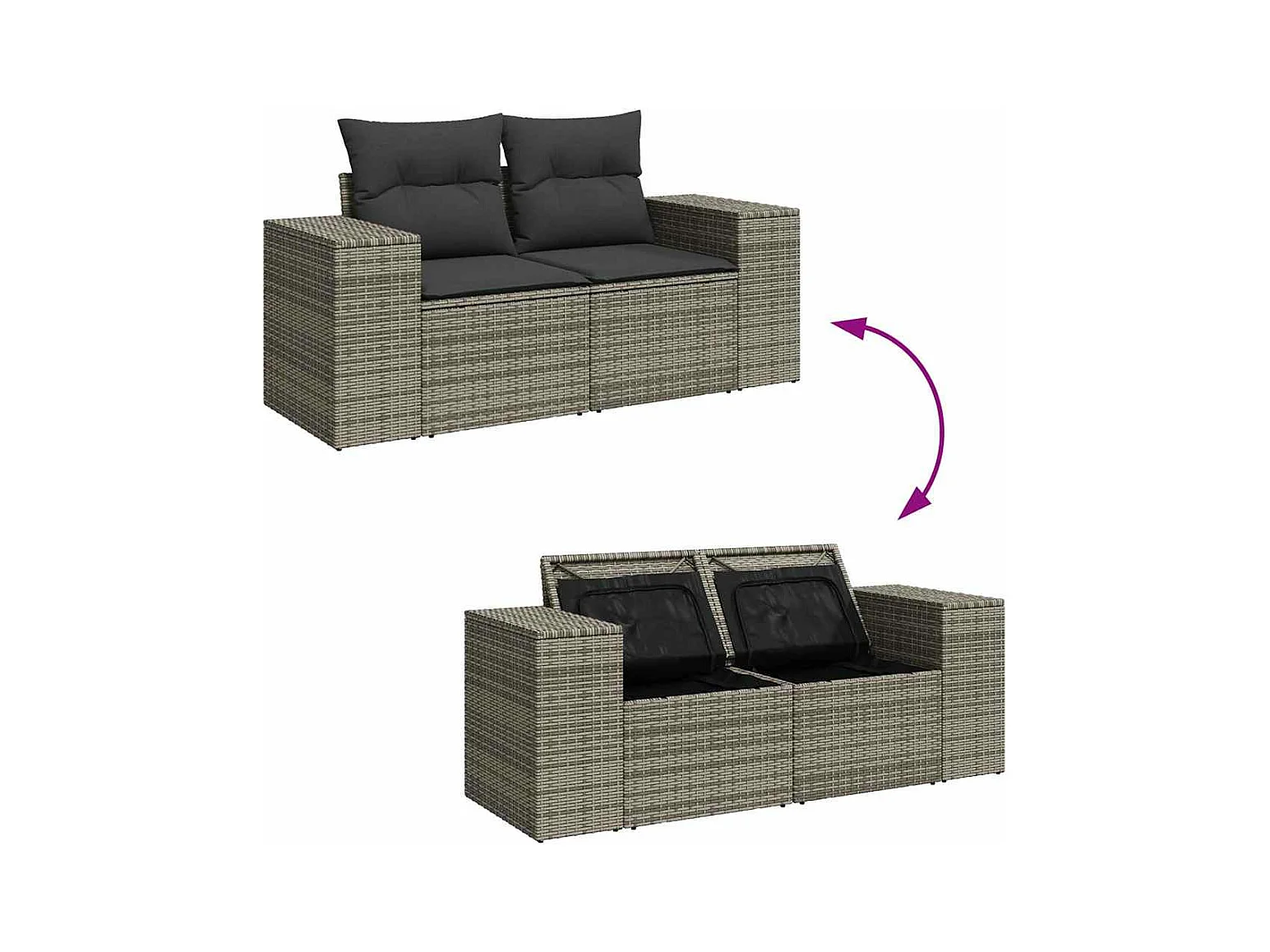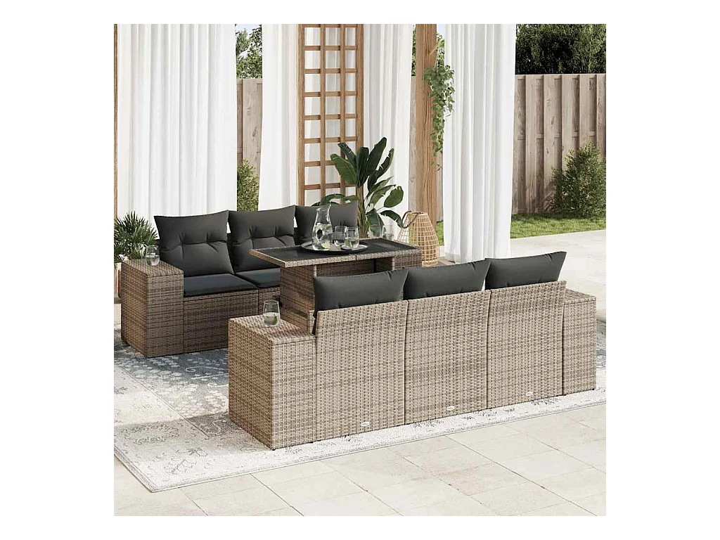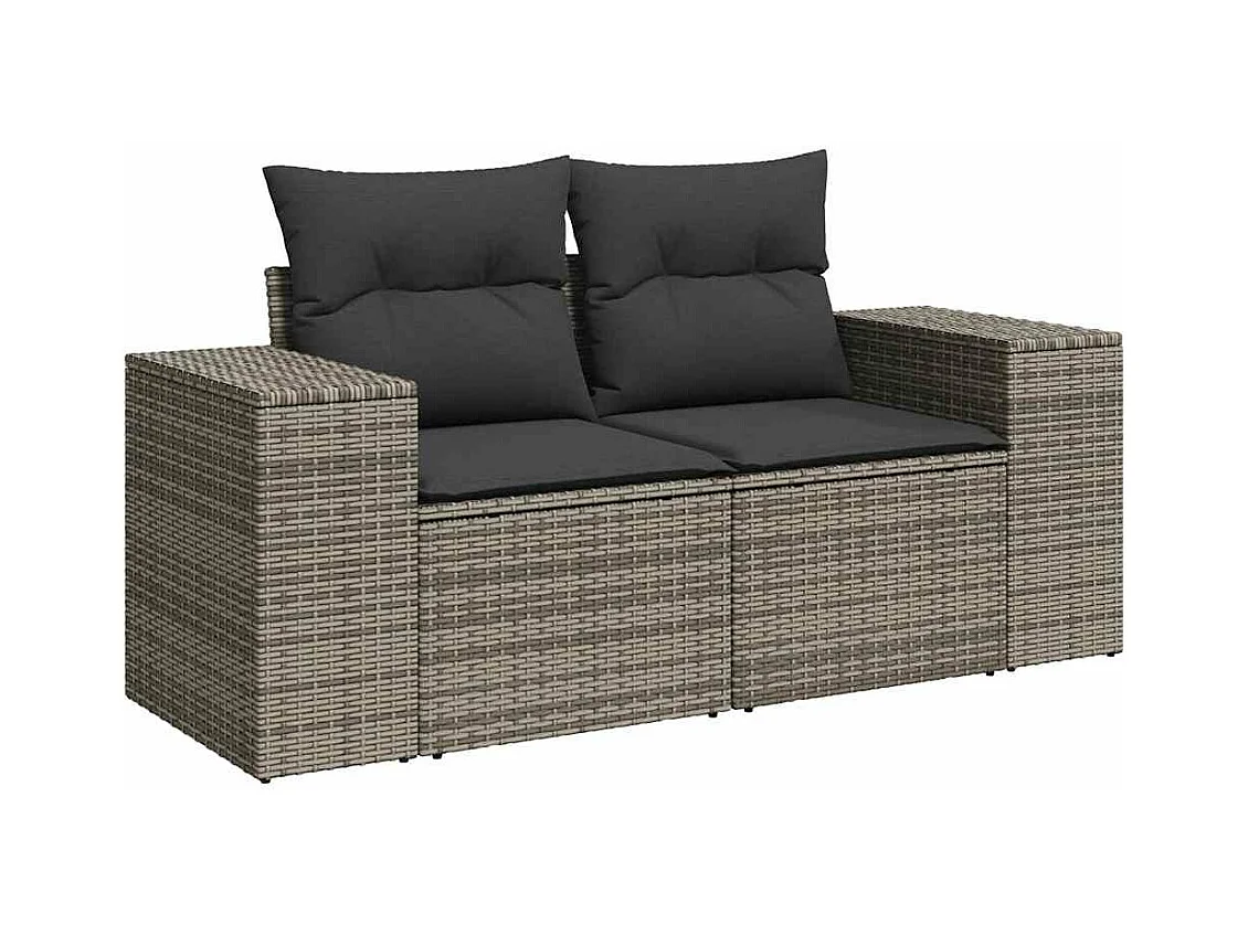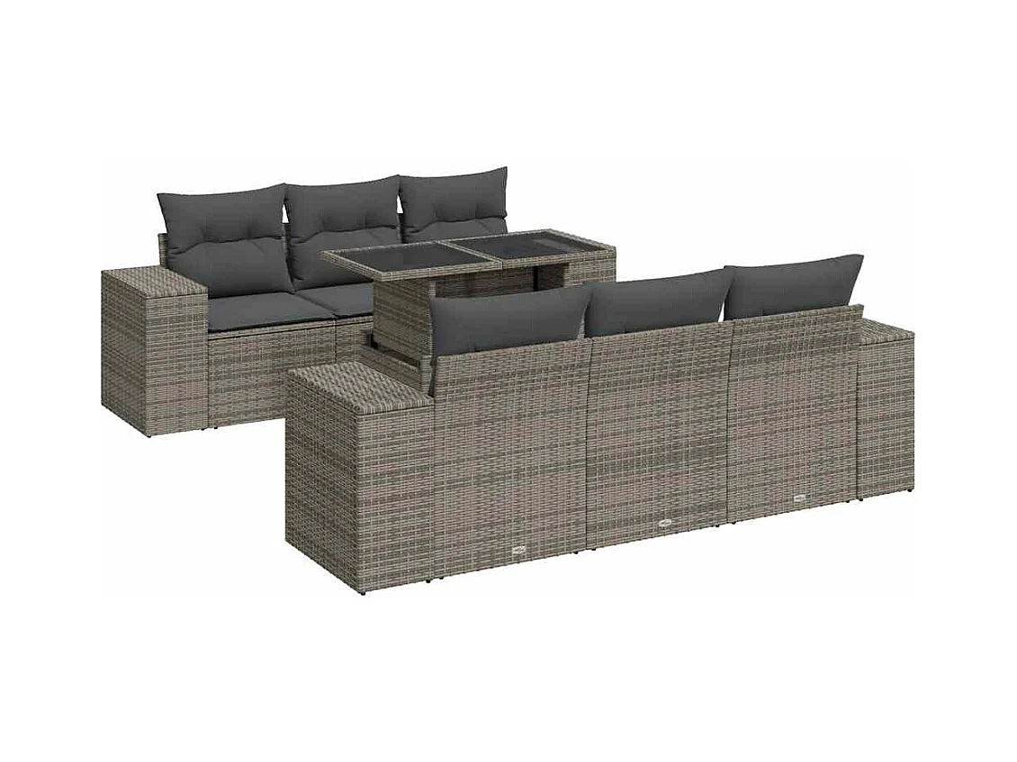 7 peças conjunto sofás para jardim com almofadões vime PE cinzento