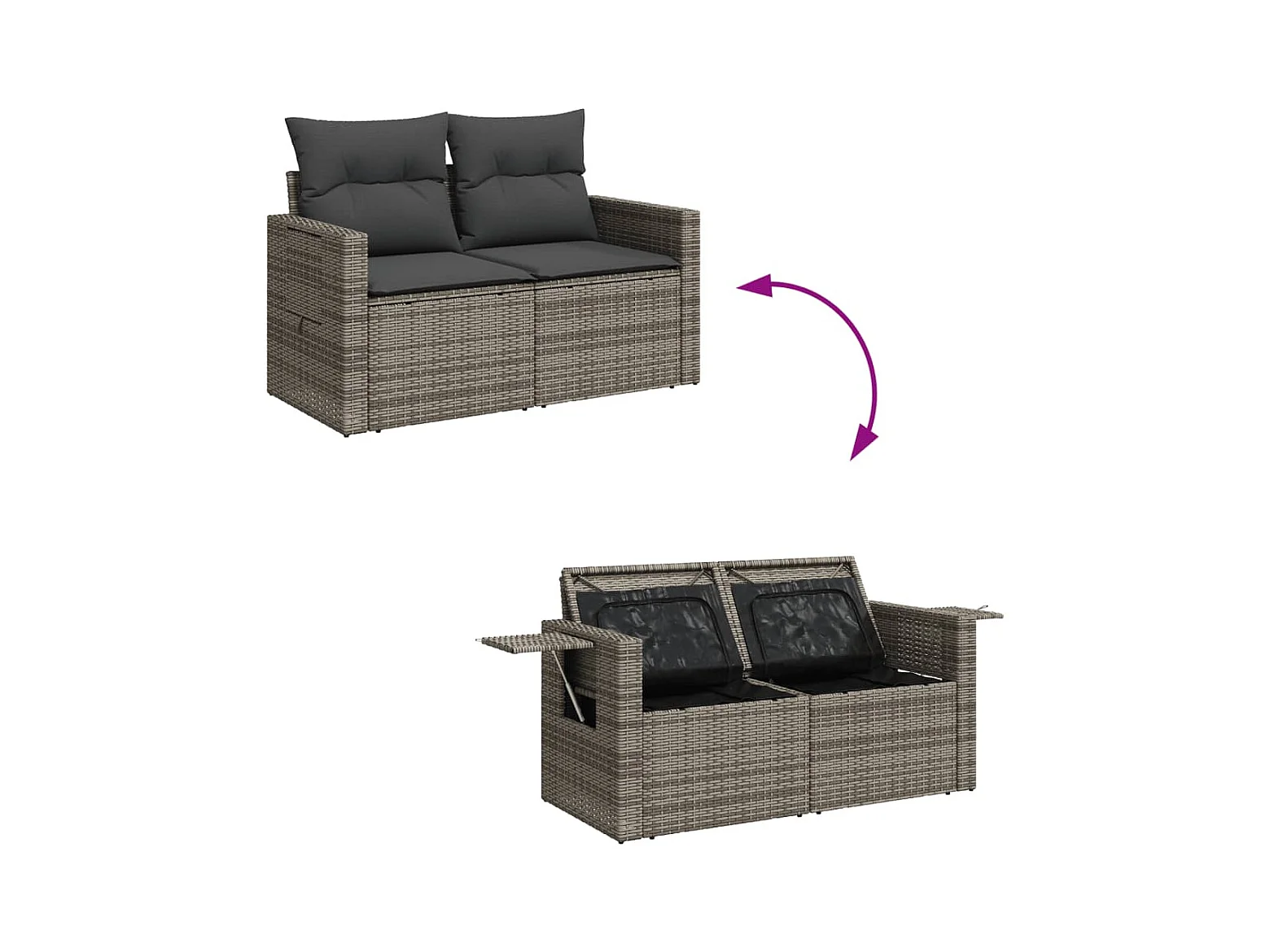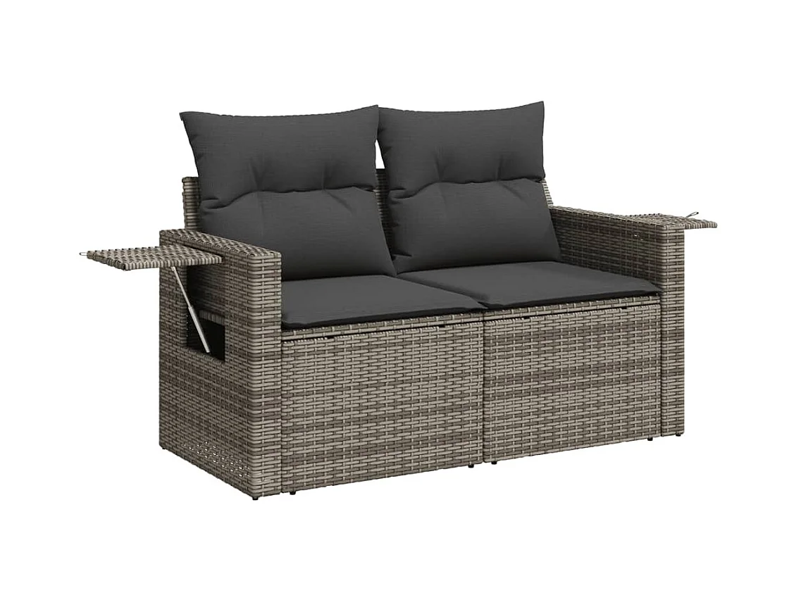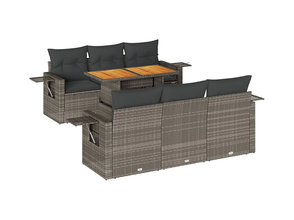 7 peças conjunto sofás para jardim com almofadões vime PE cinzento