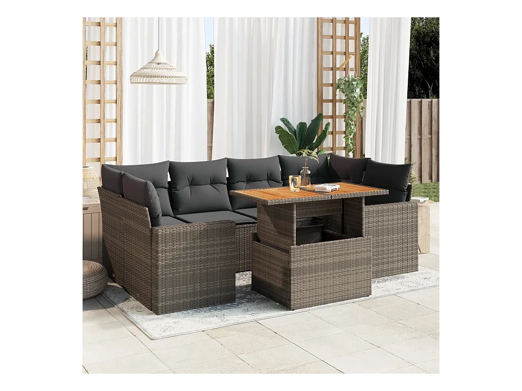 7 peças conjunto sofás para jardim com almofadões vime PE cinzento