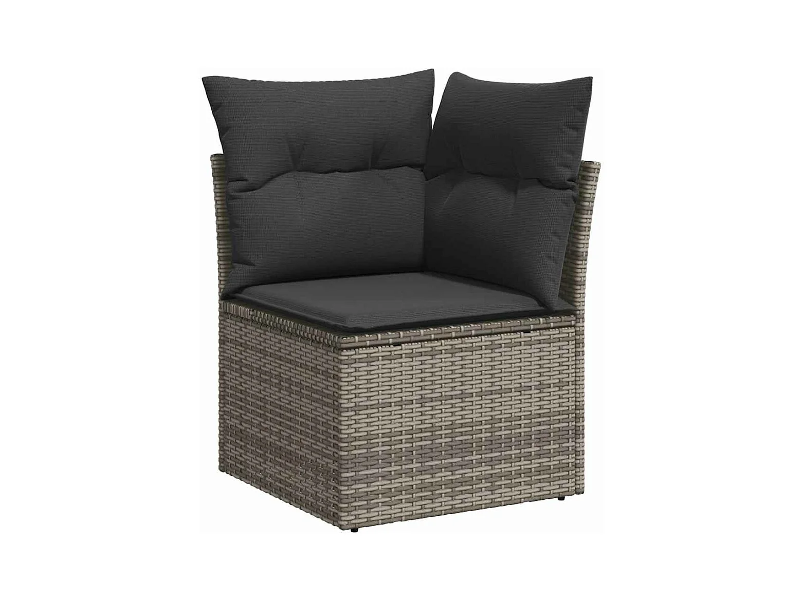 7 peças conjunto sofás para jardim com almofadões vime PE cinzento