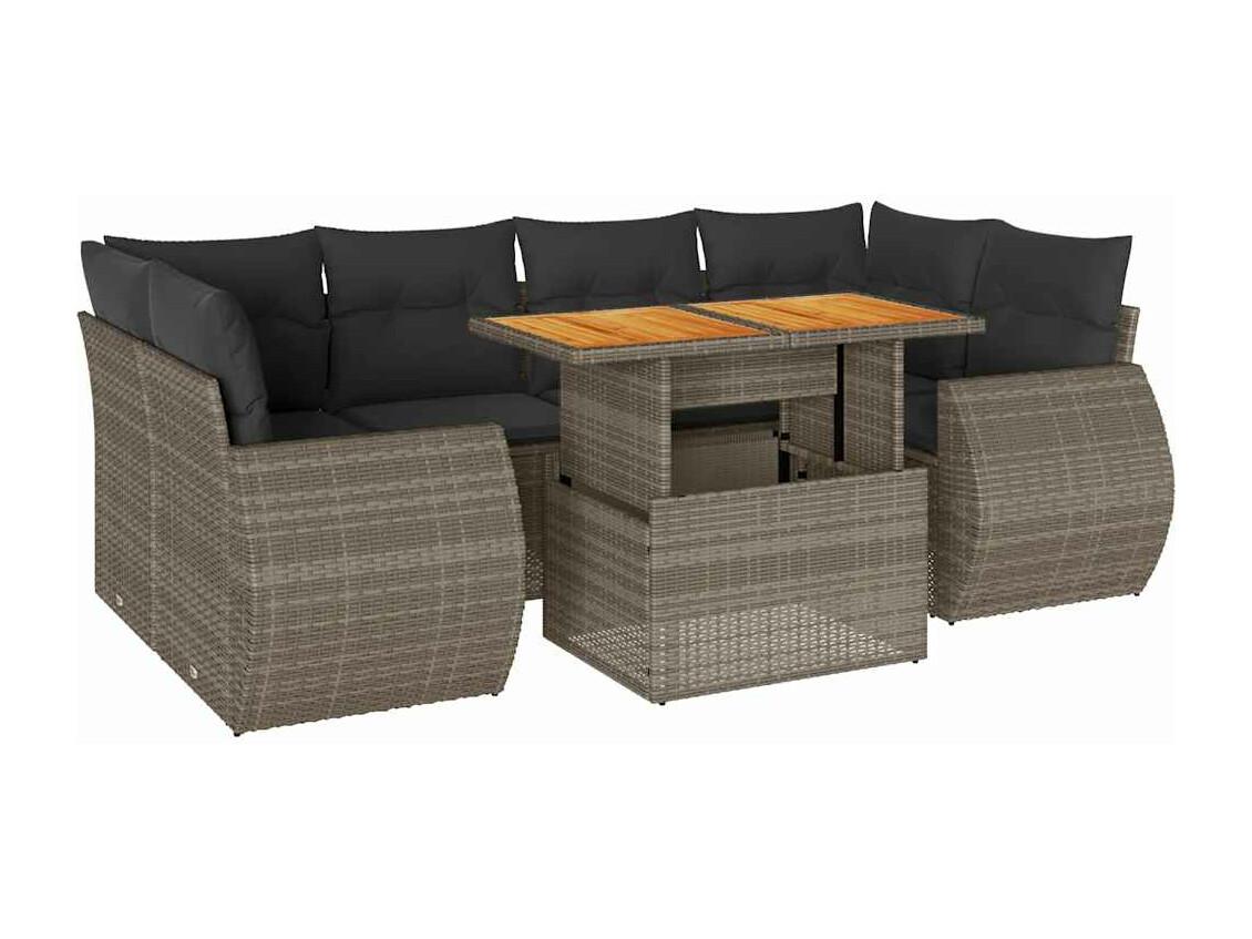 7 peças conjunto sofás para jardim com almofadões vime PE cinzento