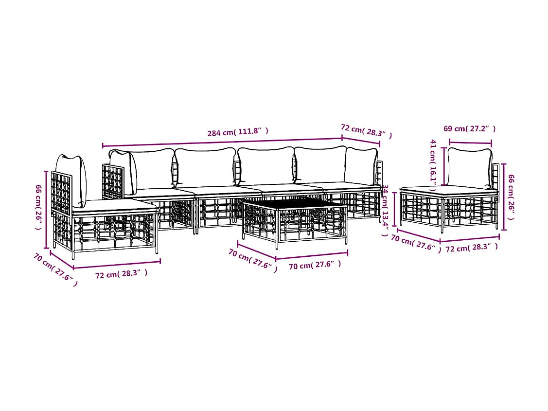 7 peças de móveis de jardim com almofadas de resina tecida antracite