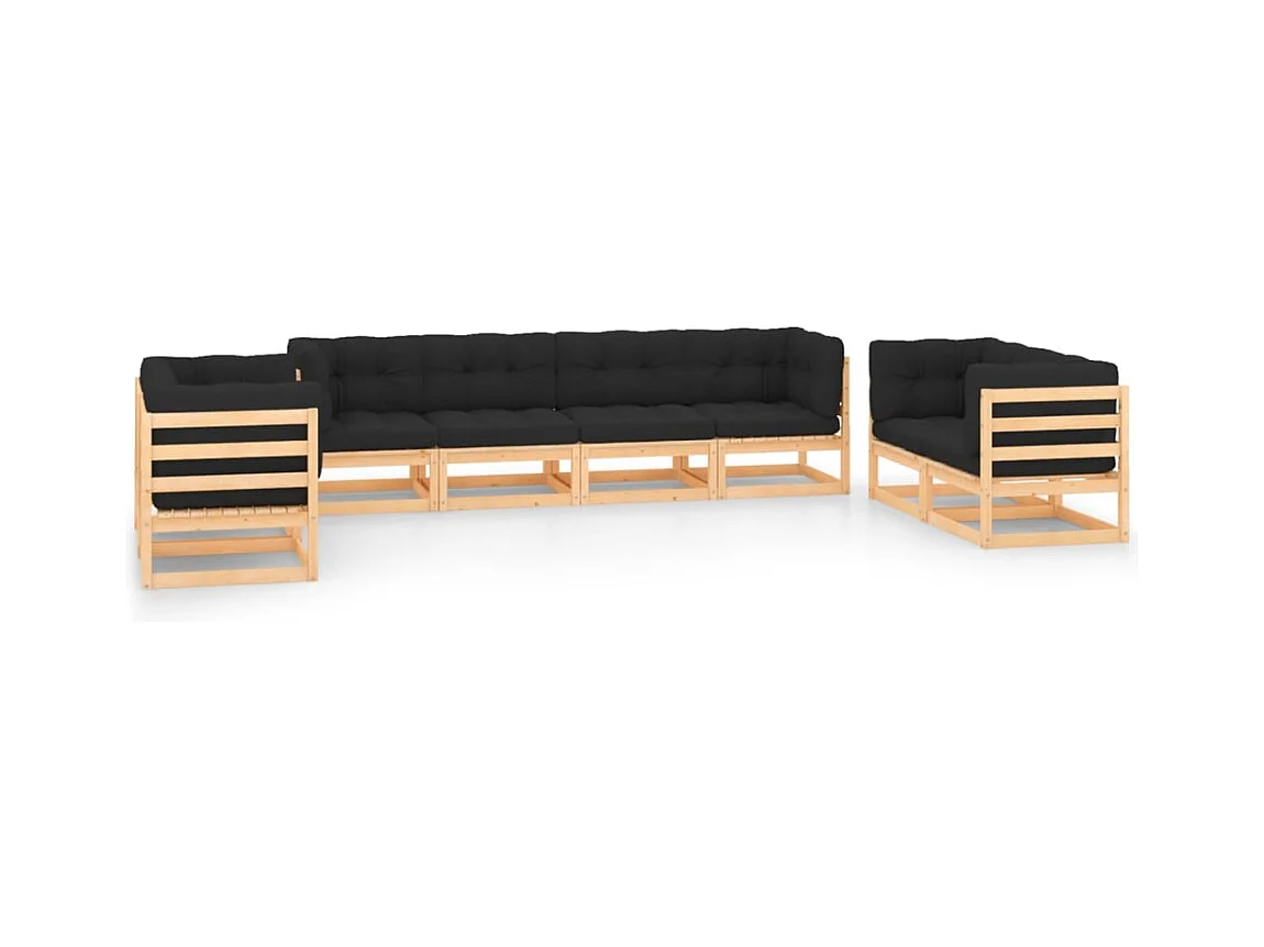 7 pcs conj. lounge jardim c/ almofadões antracite pinho maciço