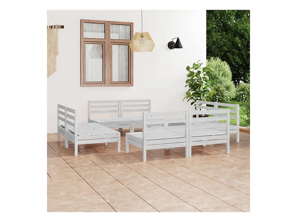 Móveis de jardim móveis de exterior conjunto de móveis 8 peças madeira maciça de pinho branco 02_0017827