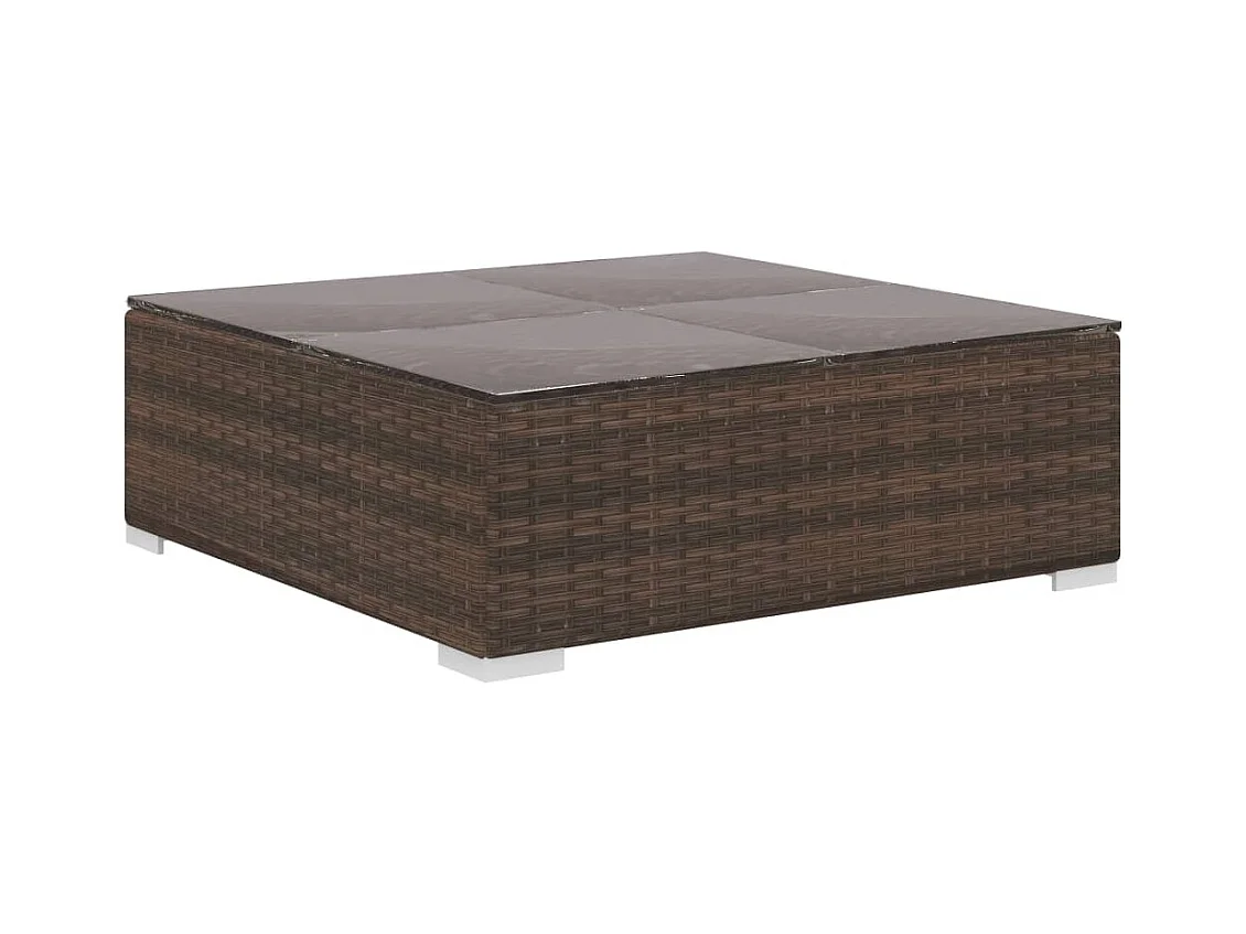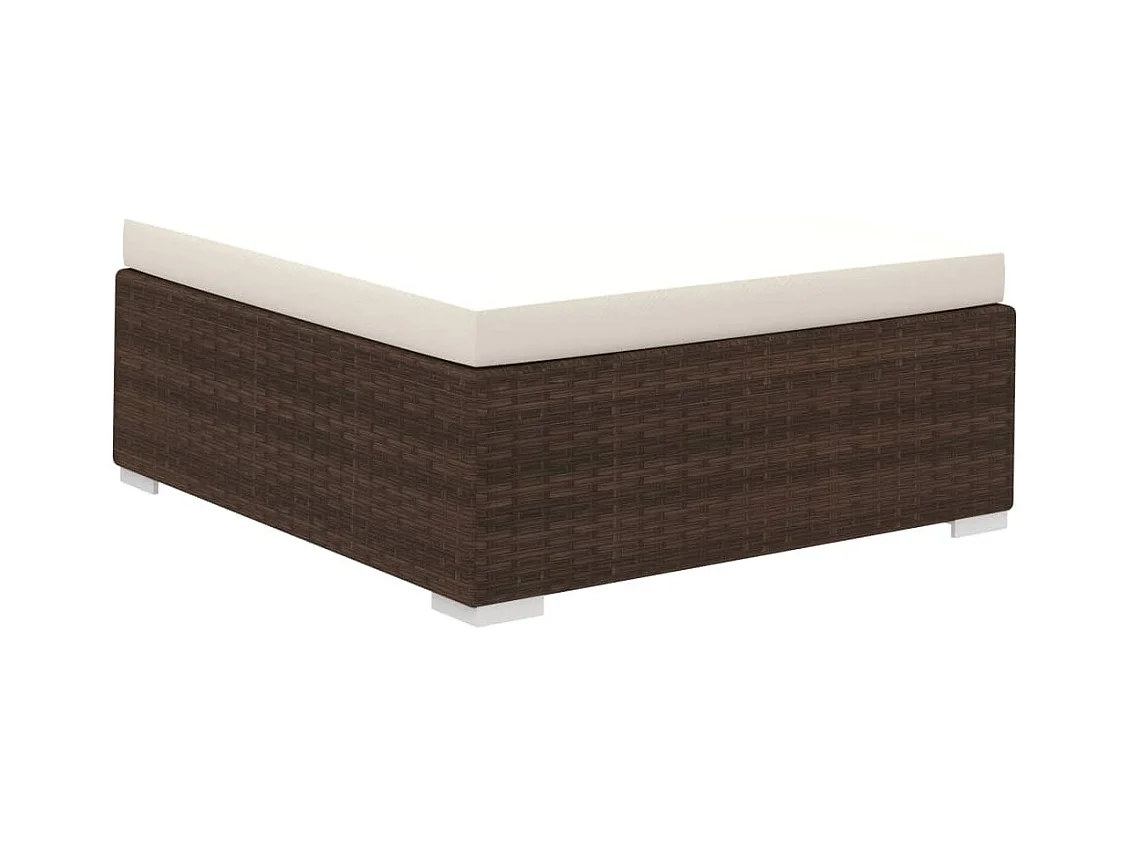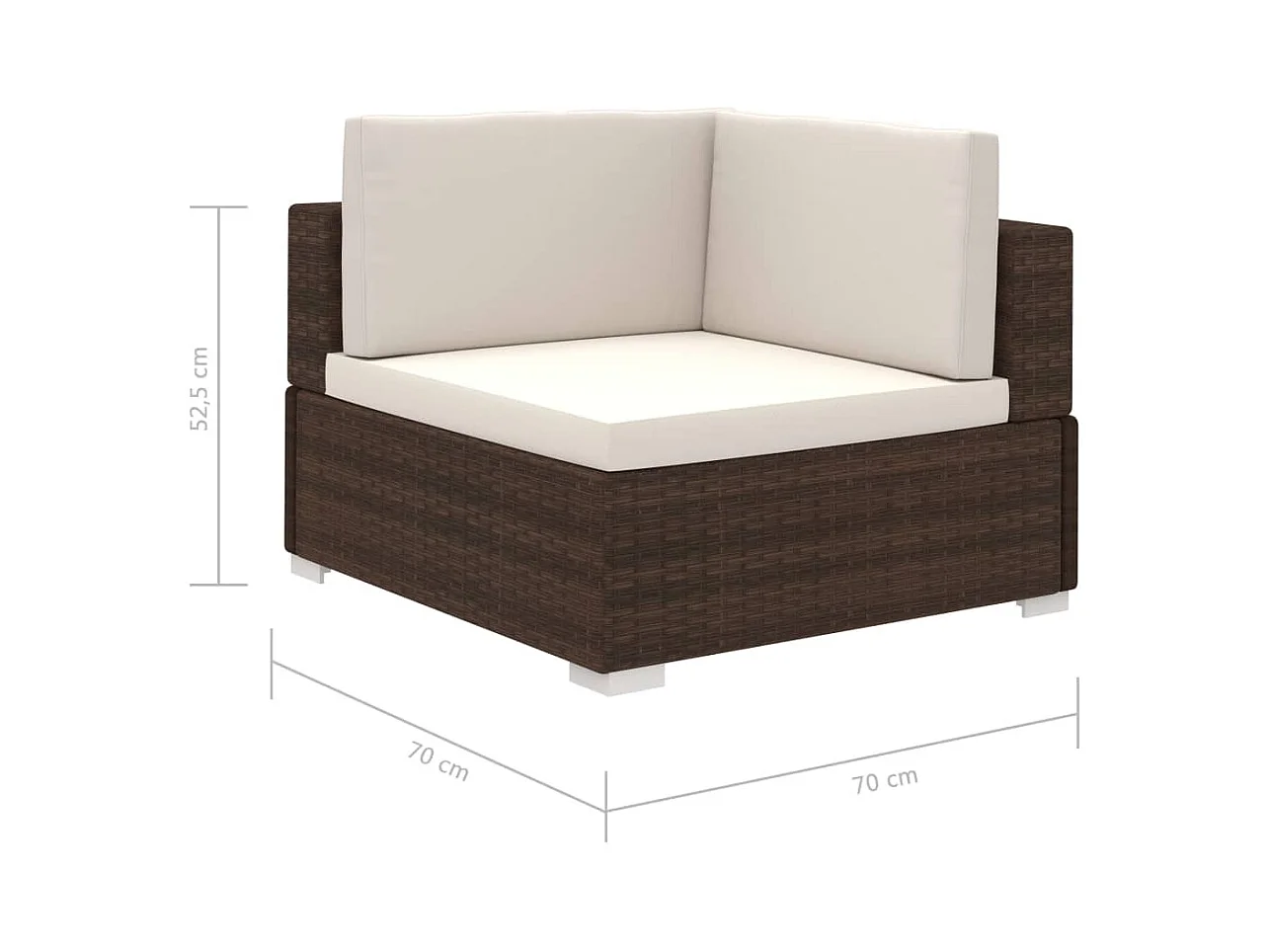 5 pcs conjunto sofás formato L c/ almofadões vime PE castanho
