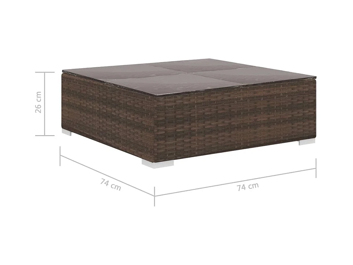 4 pcs conjunto lounge jardim c/ almofadões vime PE castanho