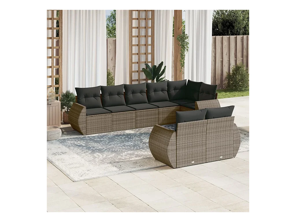 Móveis de jardim com almofadas 7 unidades de resina tecida cinza