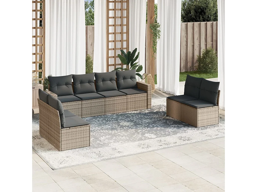 peças de móveis de jardim com almofadas de resina tecida cinza