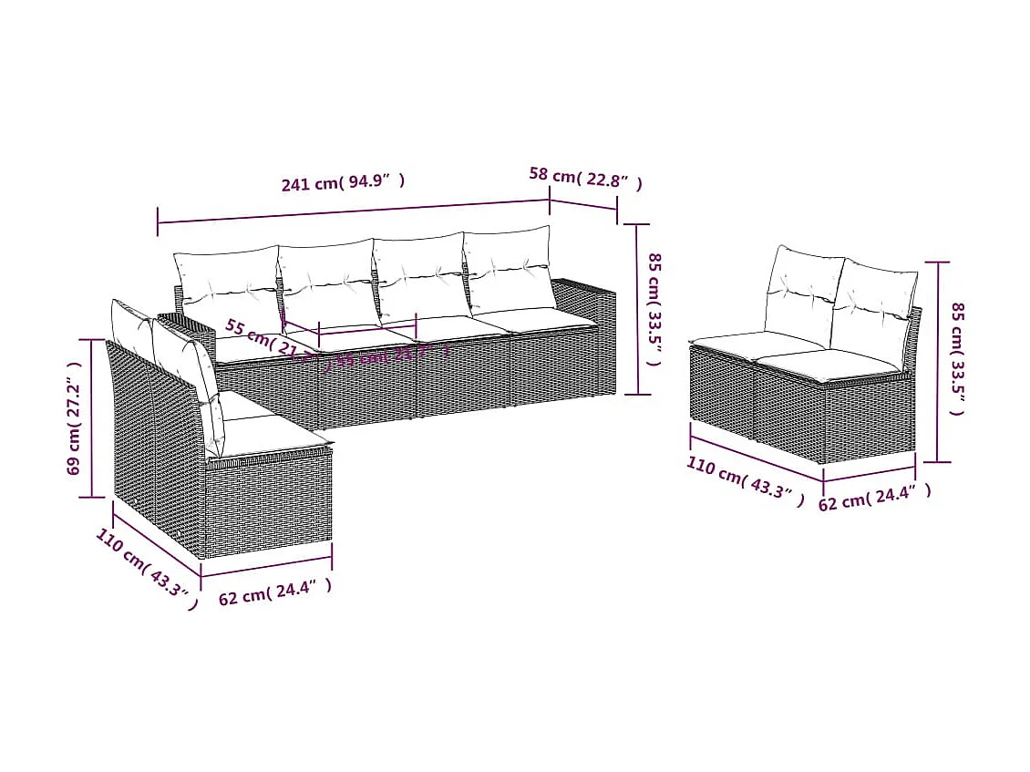 Móveis de jardim com almofadas 7 unidades de resina tecida cinza