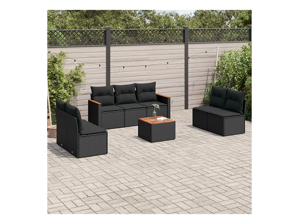 8 pcs conjunto sofás de jardim com almofadões vime PE preto