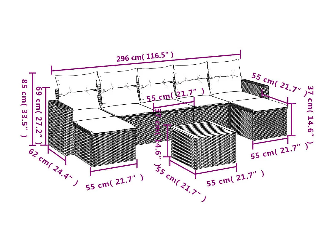 peças de móveis de jardim com almofadas de resina tecida preta