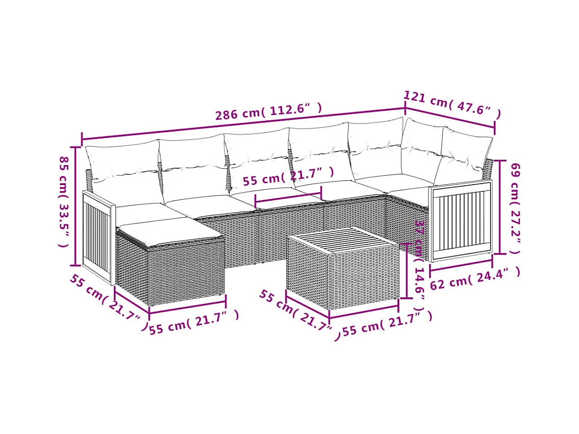 8 pcs conjunto sofás de jardim com almofadões vime PE preto