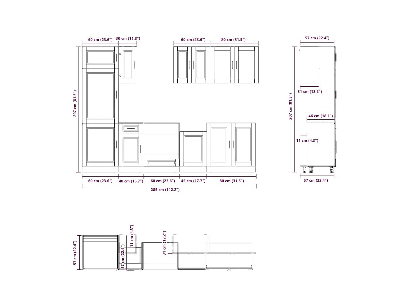 11 peças armário de cozinha conjunto Kalmar brilho branco
