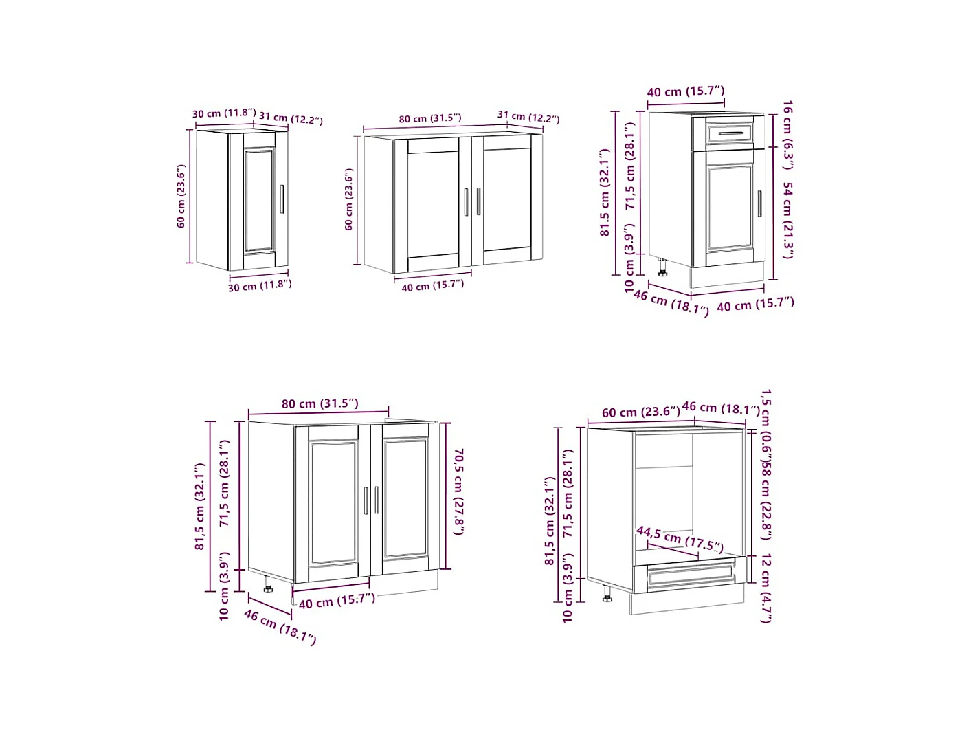 4 peças armário de cozinha conjunto Porto branco