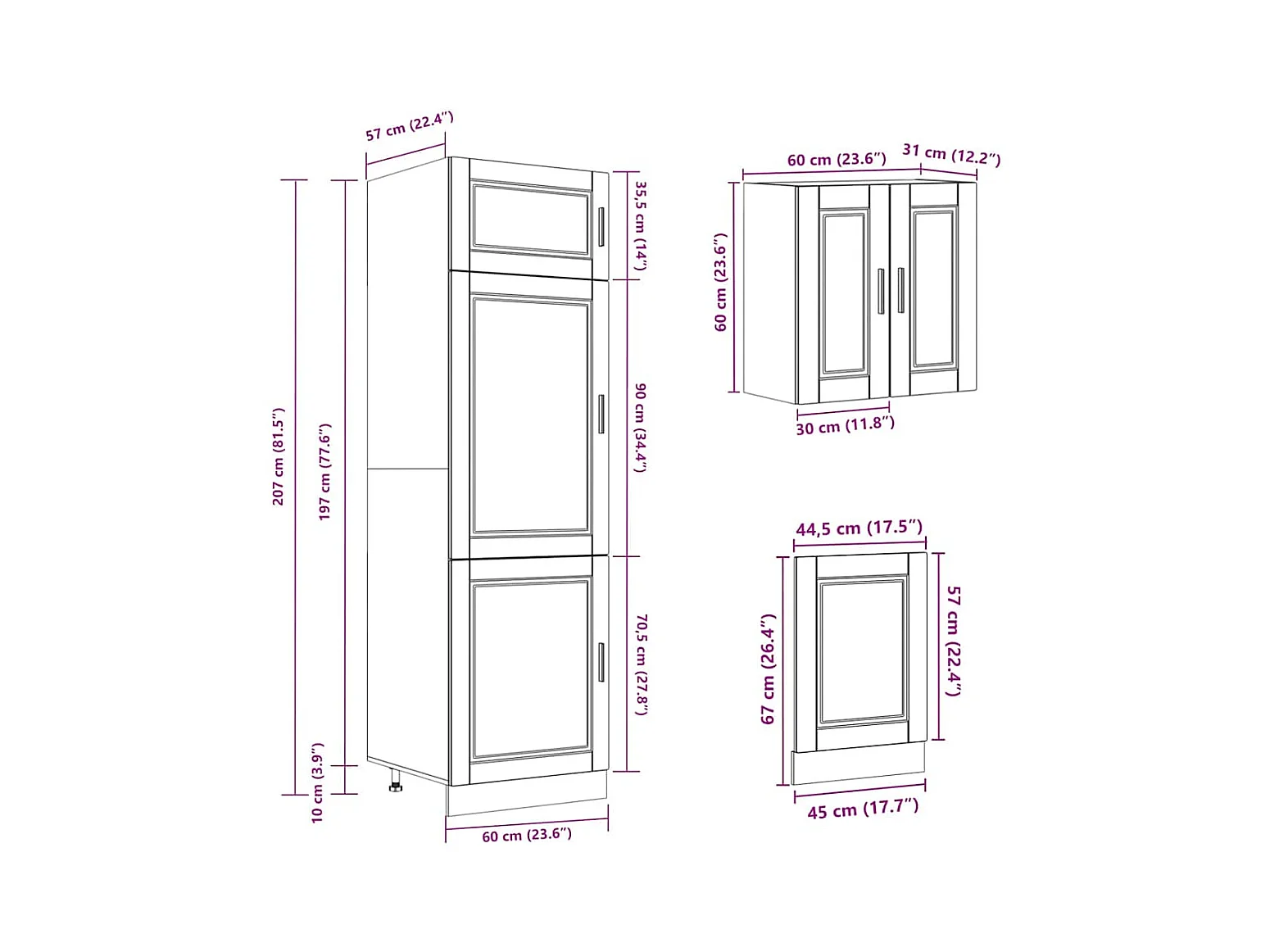 4 peças armário de cozinha conjunto Kalmar branco