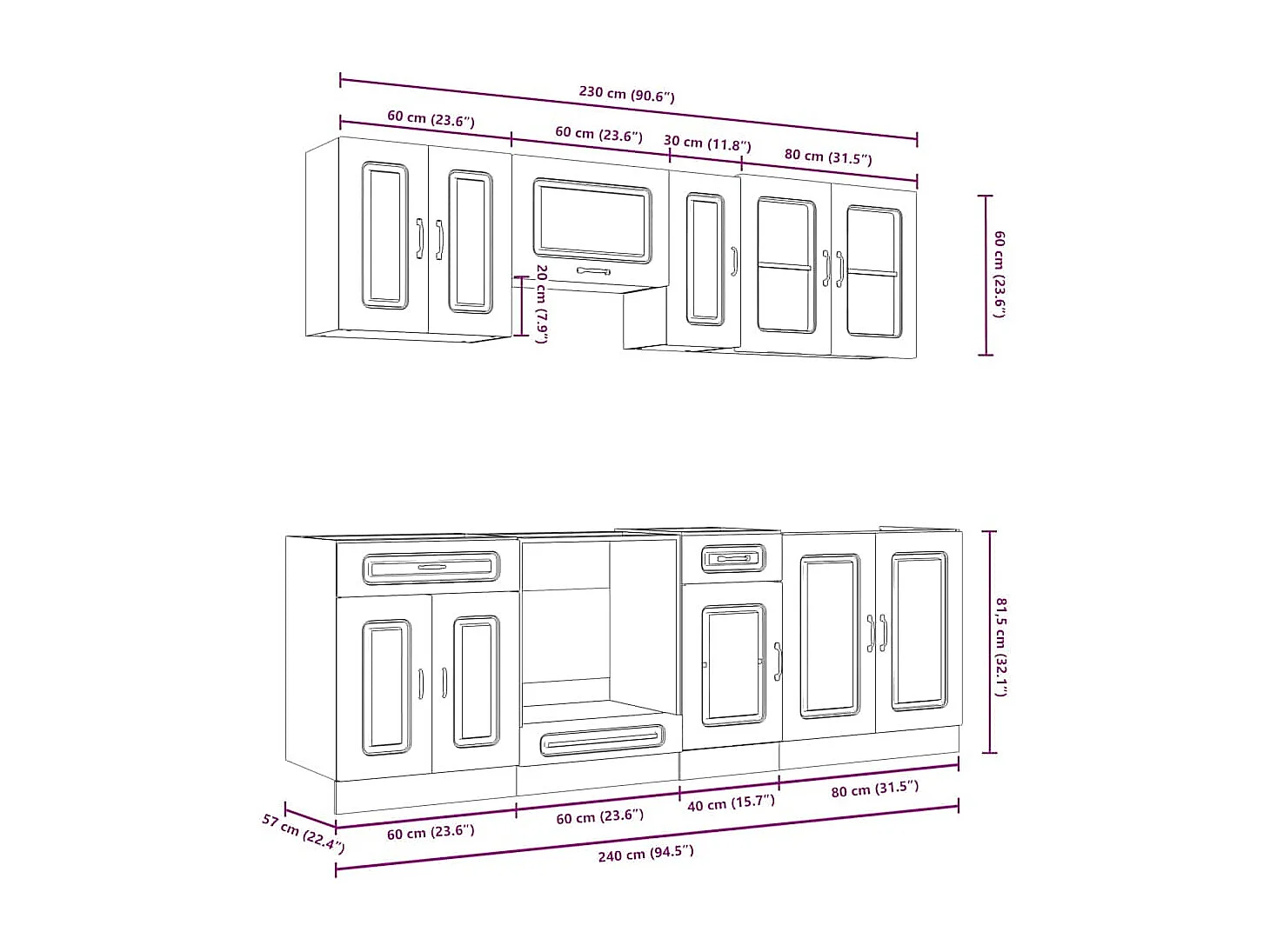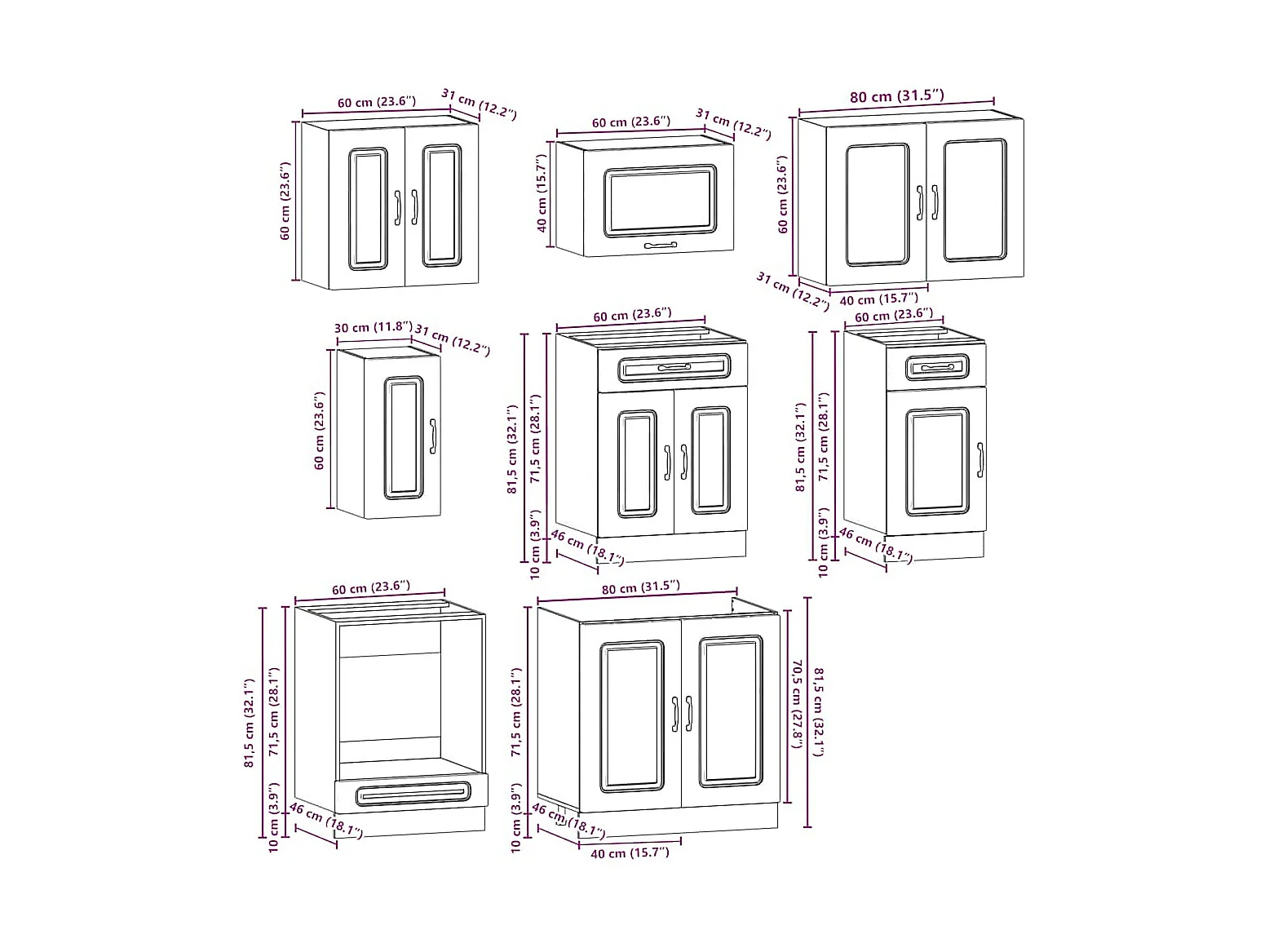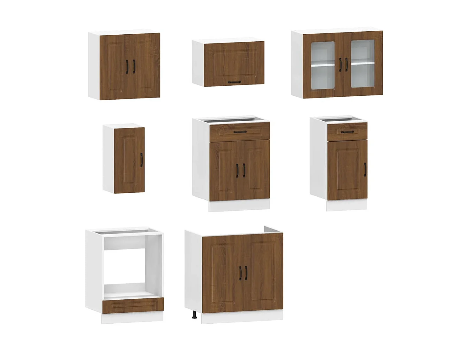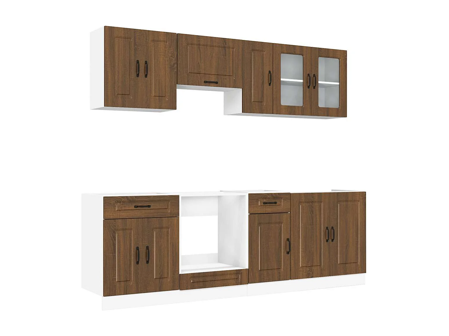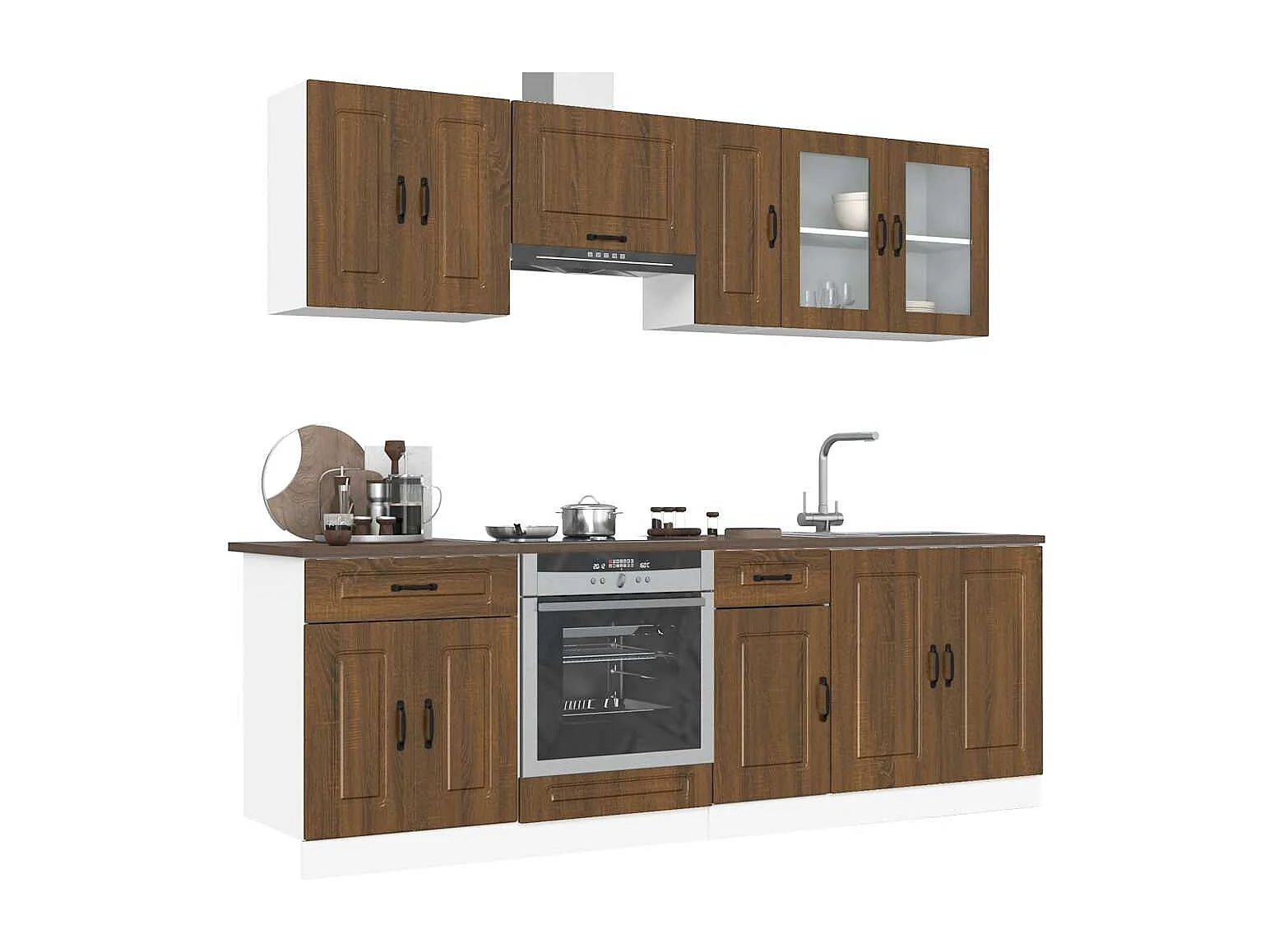 8 peças armário de cozinha conjunto Kalmar carvalho castanho