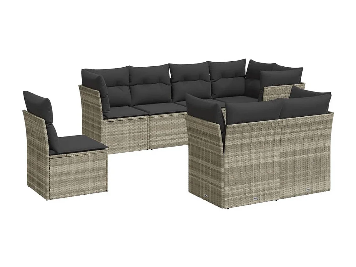 8 peças conj. sofás jardim com almofadões vime PE cinzento-claro