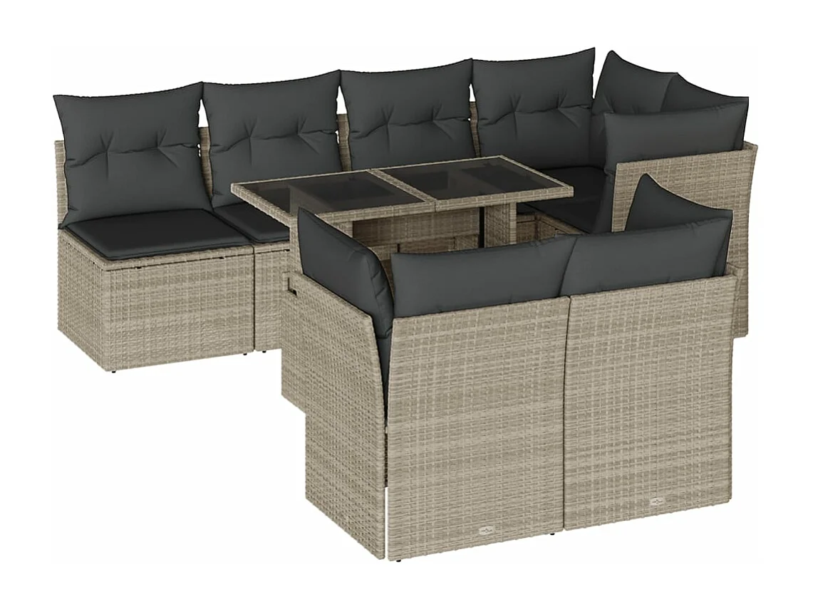 8 peças conj. sofás jardim com almofadões vime PE cinzento-claro