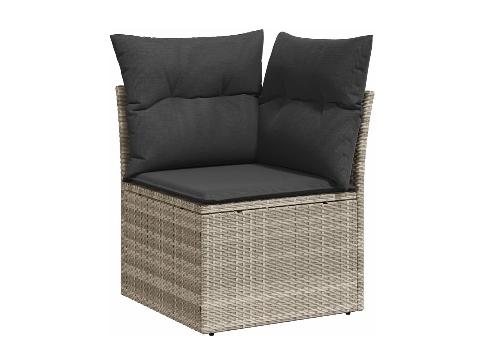 9 peças conj. sofás jardim com almofadões vime PE cinzento-claro