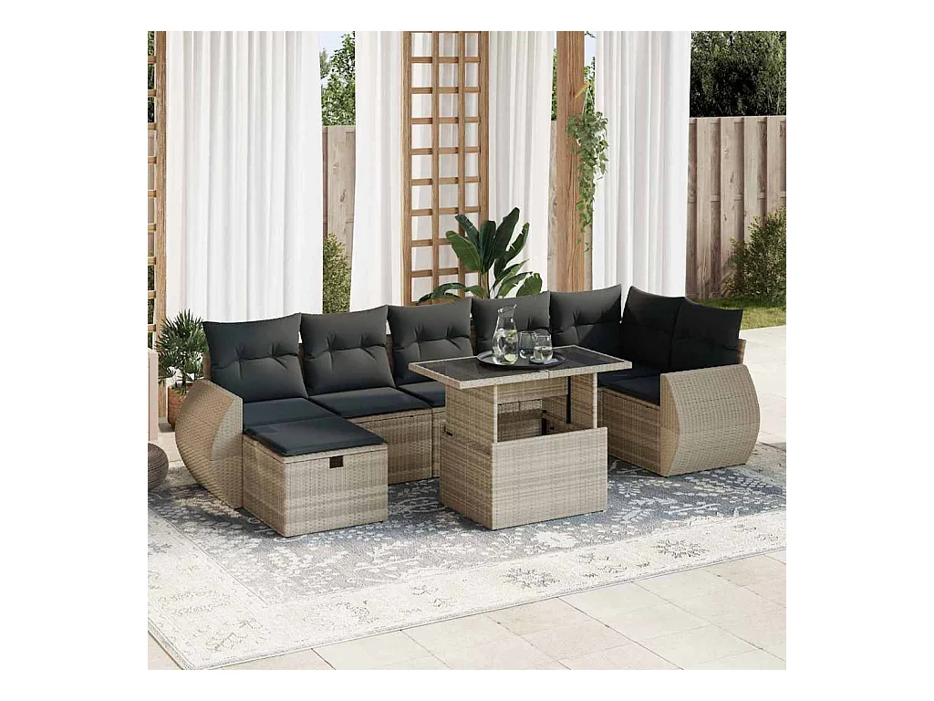 7 peças conjunto sofás jardim almofadões vime PE/acácia cinzento