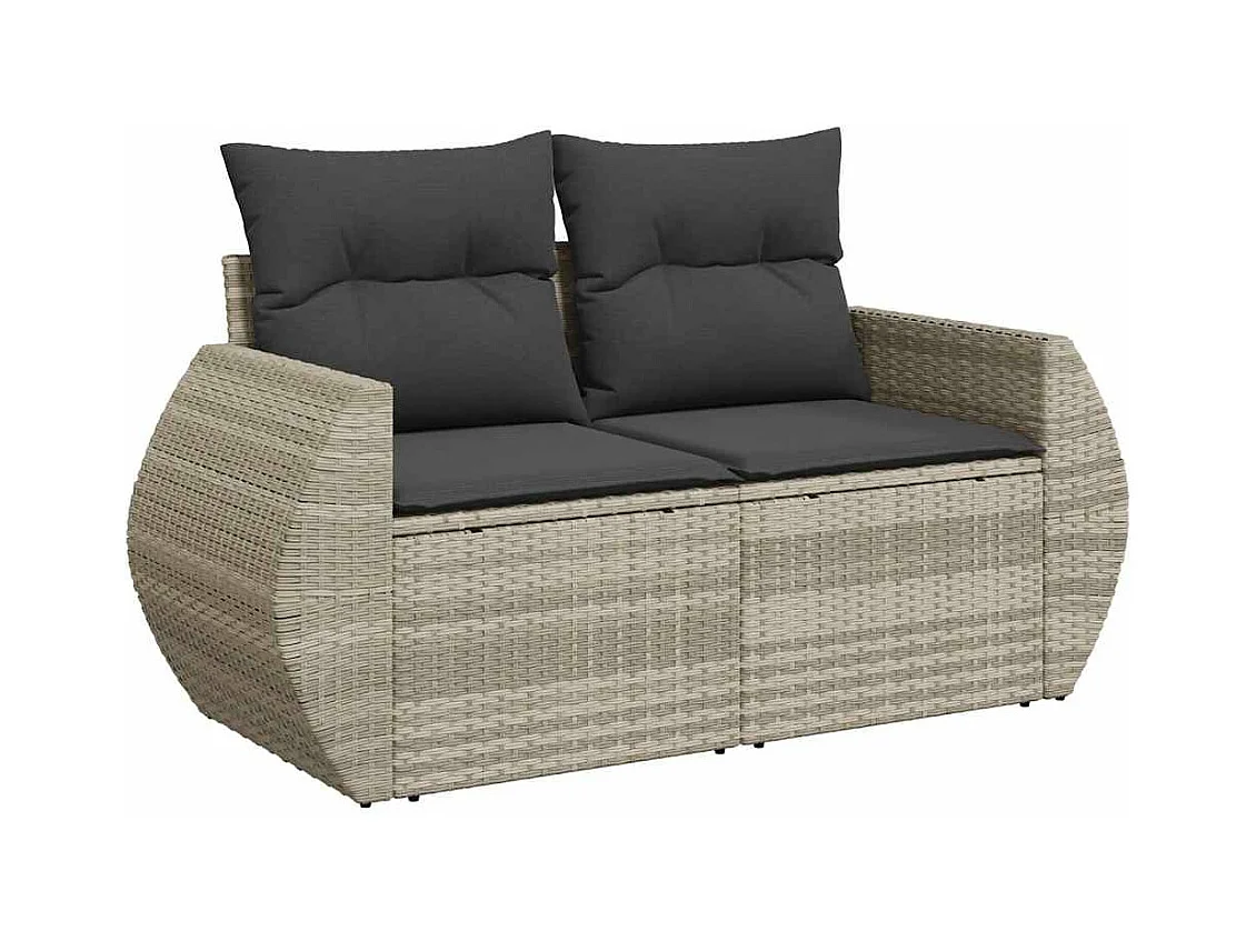 8 peças conjunto sofás de jardim com almofadões vime PE cinzento