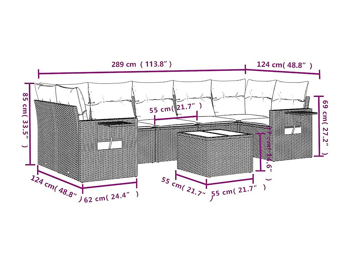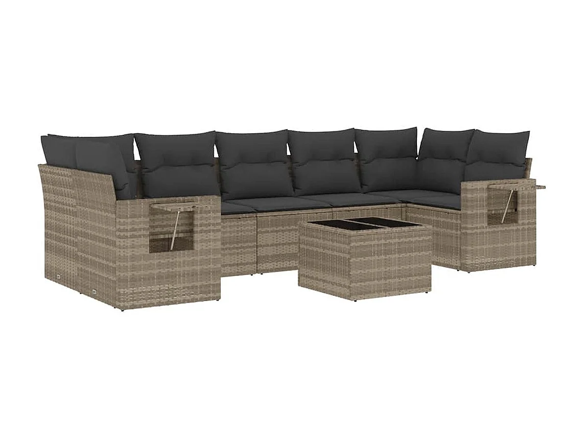 8 peças conj. sofás jardim com almofadões vime PE cinzento-claro
