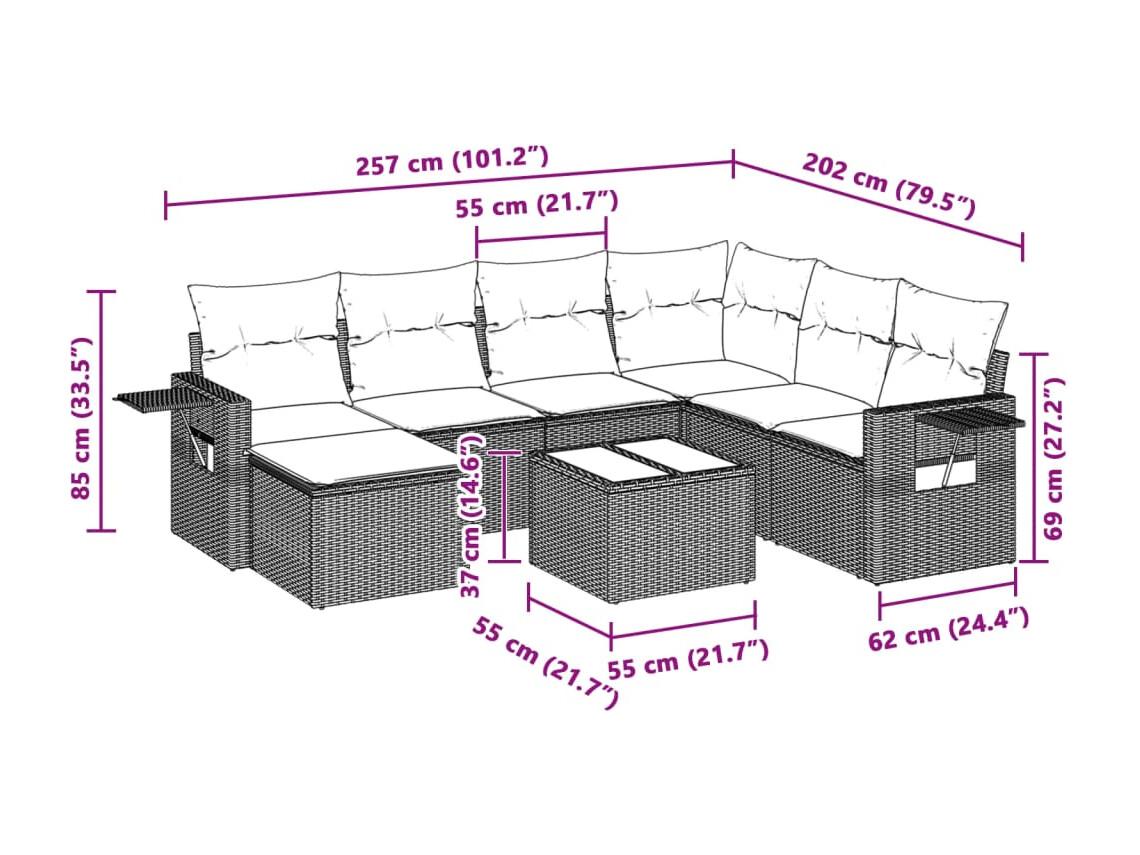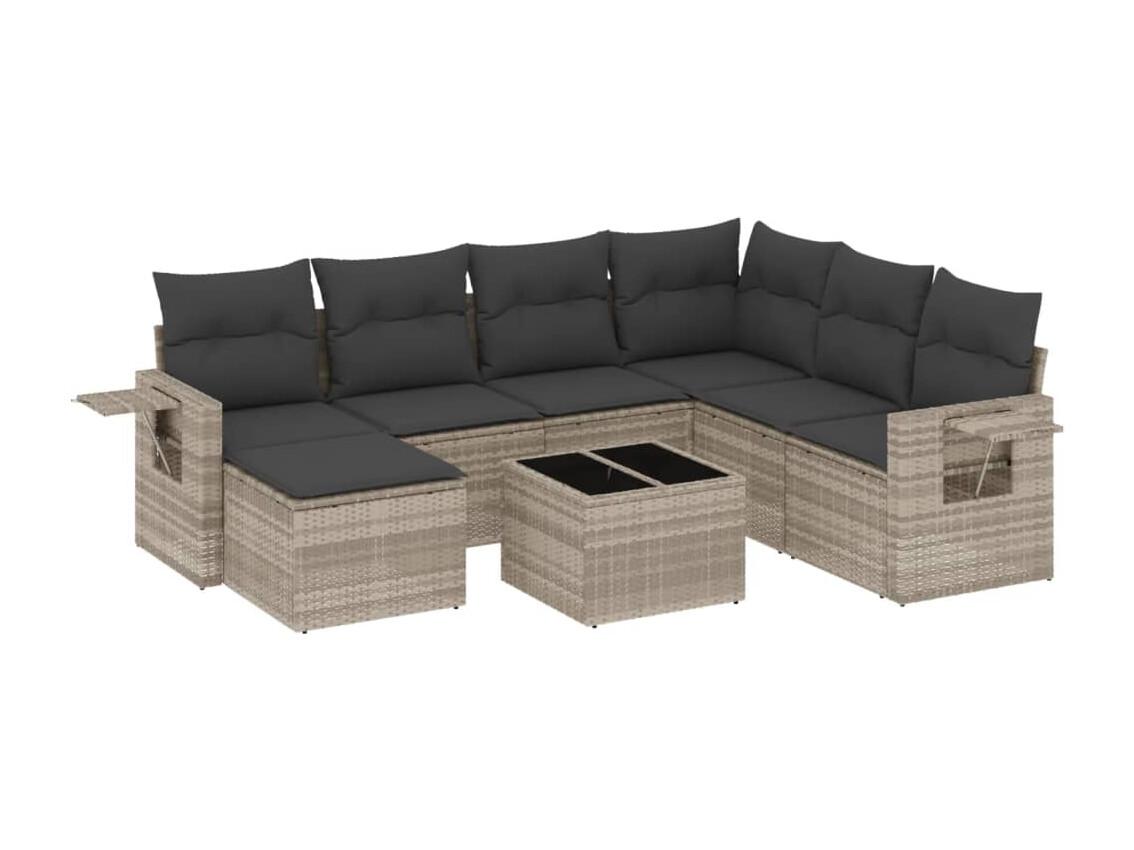 8 peças conj. sofás jardim com almofadões vime PE cinzento-claro