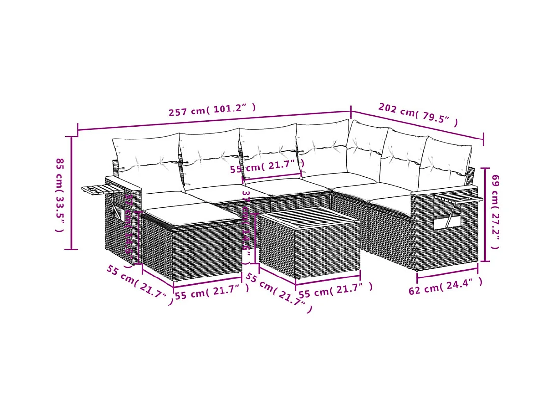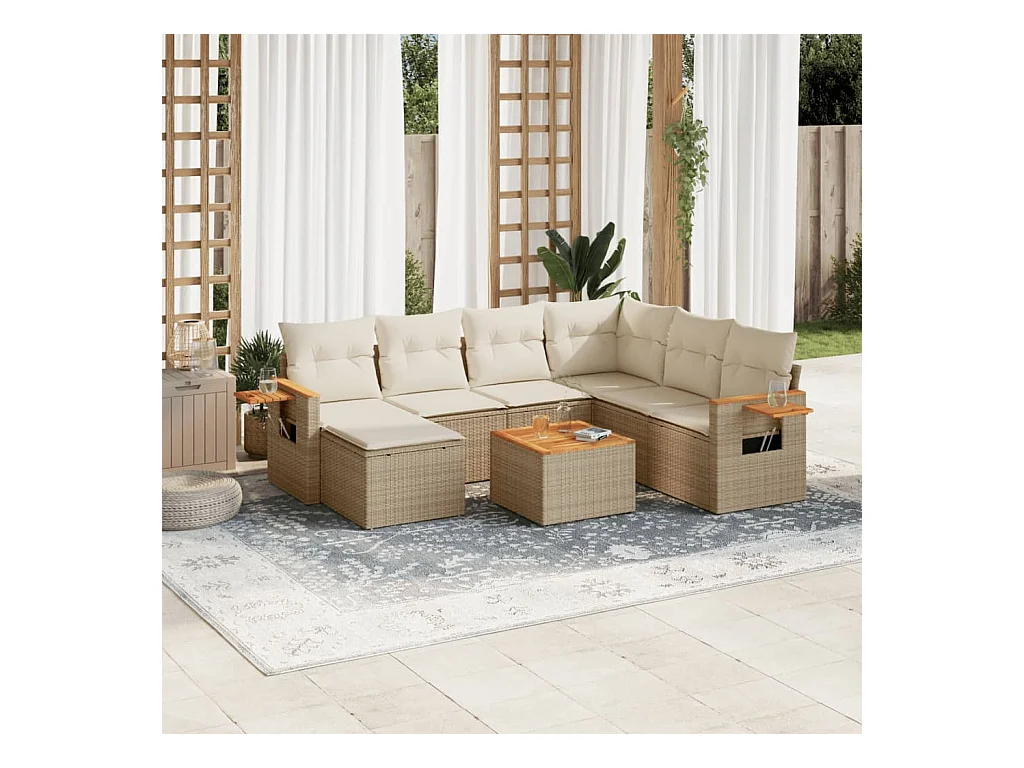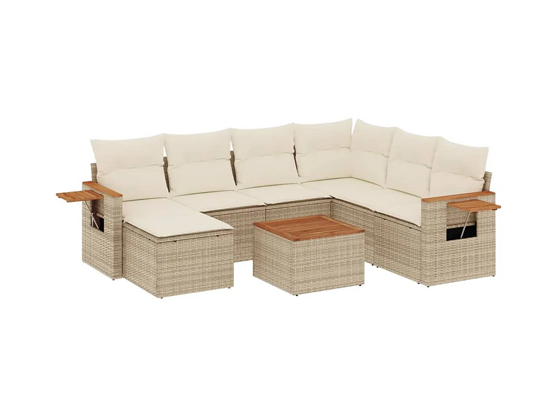 8 peças conjunto de sofás p/ jardim com almofadões vime PE bege