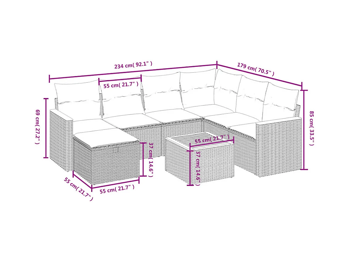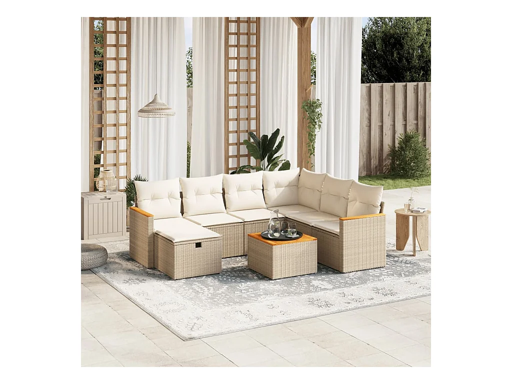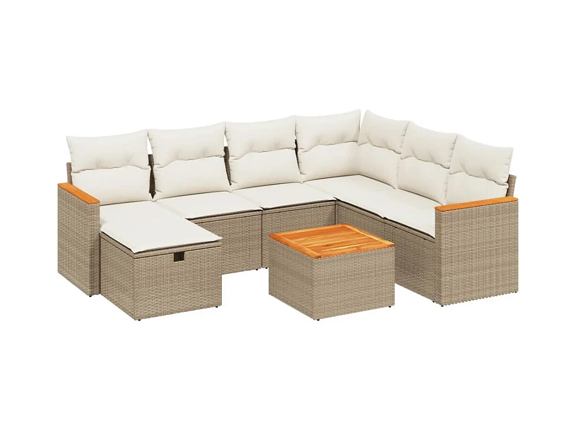 8 pcs conjunto de sofás p/ jardim com almofadões vime PE bege